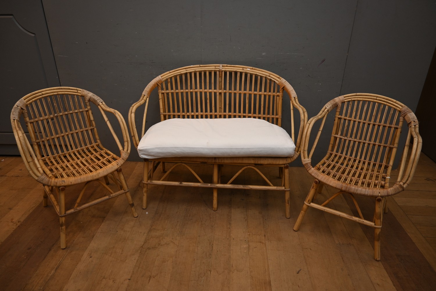 A THREE PIECE BAMBOO LOUNGE SUITE (A/F) (90H X 114W X 71D CM) (LEONARD JOEL DELIVERY SIZE: LARGE)