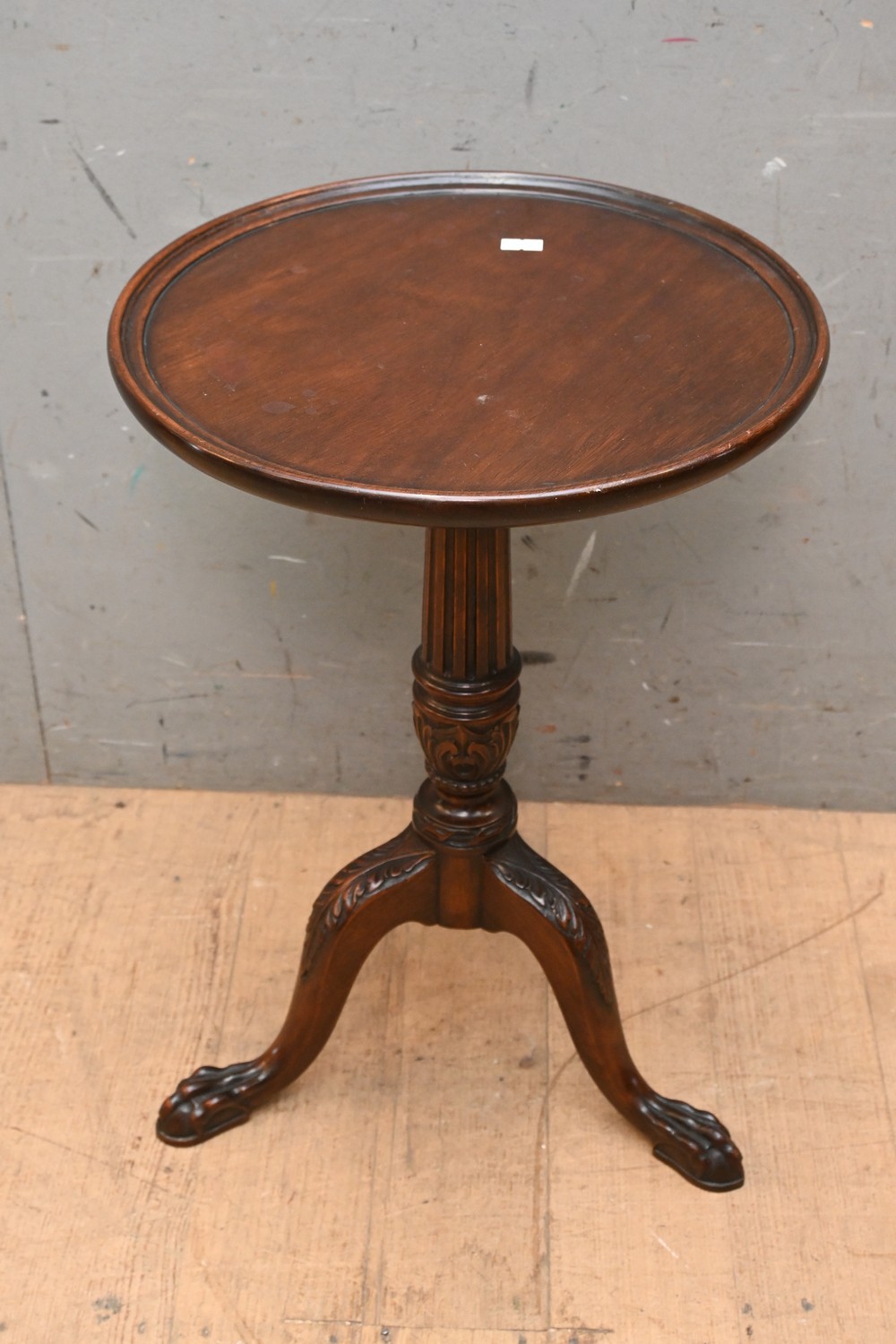 A CARVED CHIPPENDALE STYLE SOLID MAHOGANY COFFEE TABLE ( 54H X 36 DIAMETER CM) (LEONARD JOEL DELIVERY SIZE: MEDIUM)