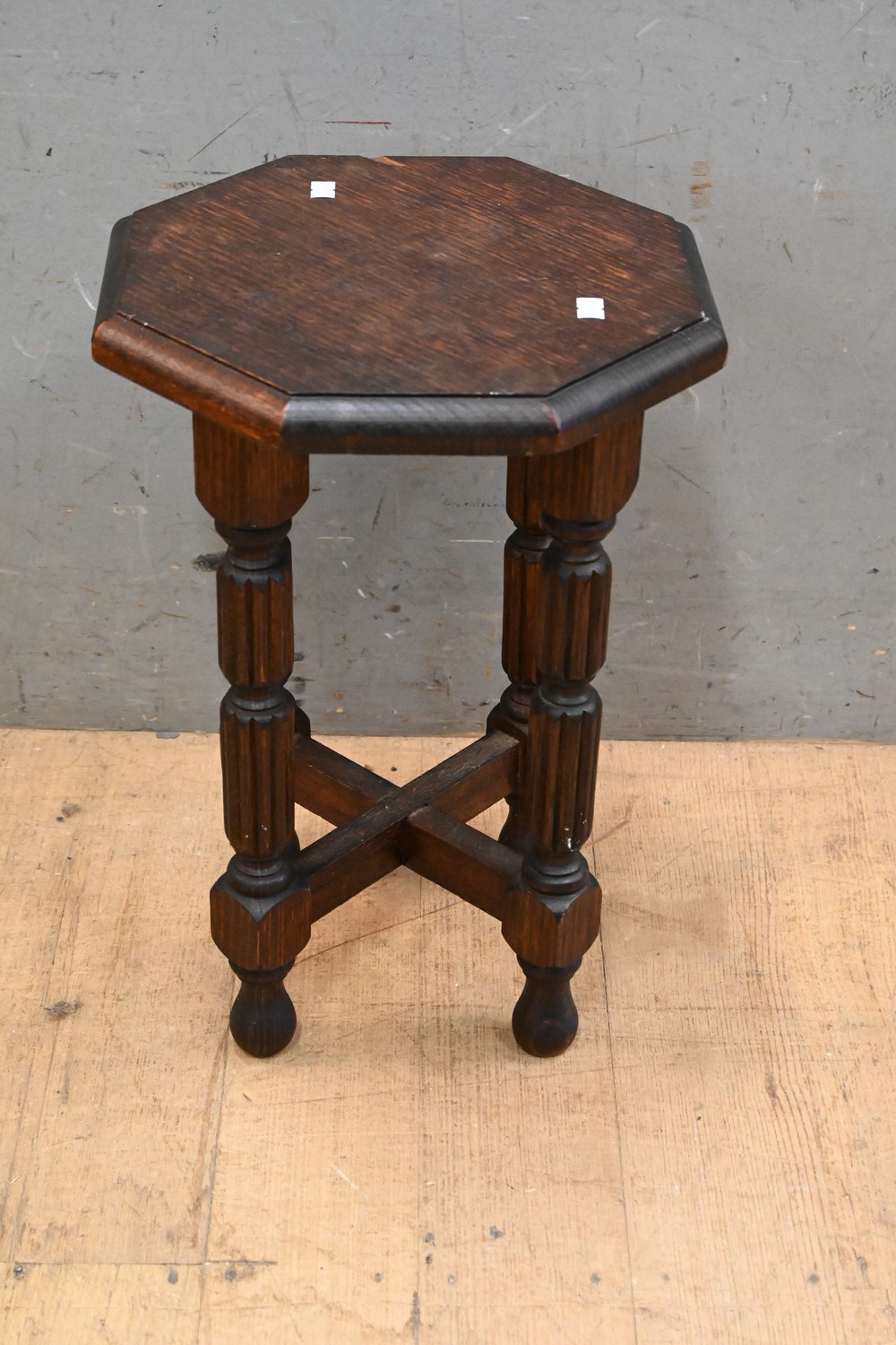 AN ENGLISH OAK OCTAGONAL CARVED WOODEN TABLE (44H X 30W X 30D CM) (LEONARD JOEL DELIVERY SIZE: MEDIUM)