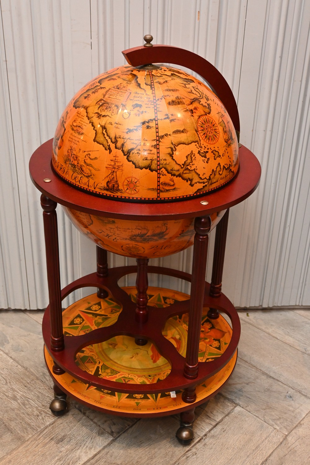 A WORLD GLOBE FLIP TOP BAR ON CASTORS (92H X 51D CM) (LEONARD JOEL DELIVERY SIZE: LARGE)