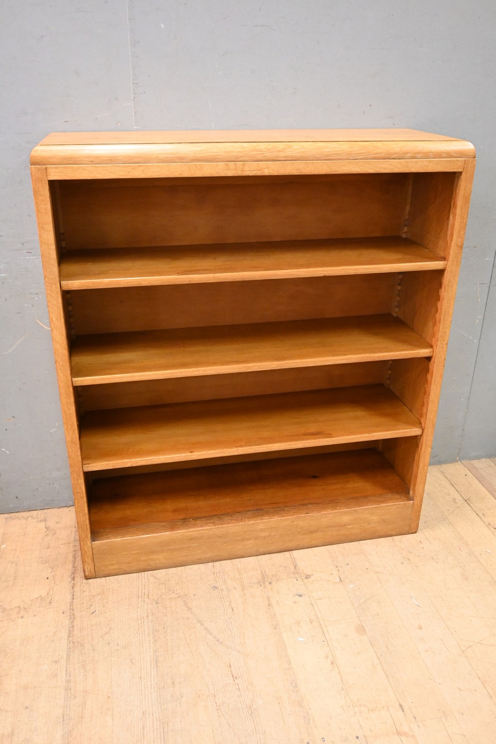 AN ART DECO OAK ADJUSTABLE BOOKSHELF (116H X 103W X 34D CM) (PLEASE NOTE THIS HEAVY ITEM MUST BE REMOVED BY CLIENTS OR CARRIERS AT THE CUSTOMERS EXPENSE. LEONARD JOEL STAFF CANNOT ASSIST CARRYING THIS ITEM)
