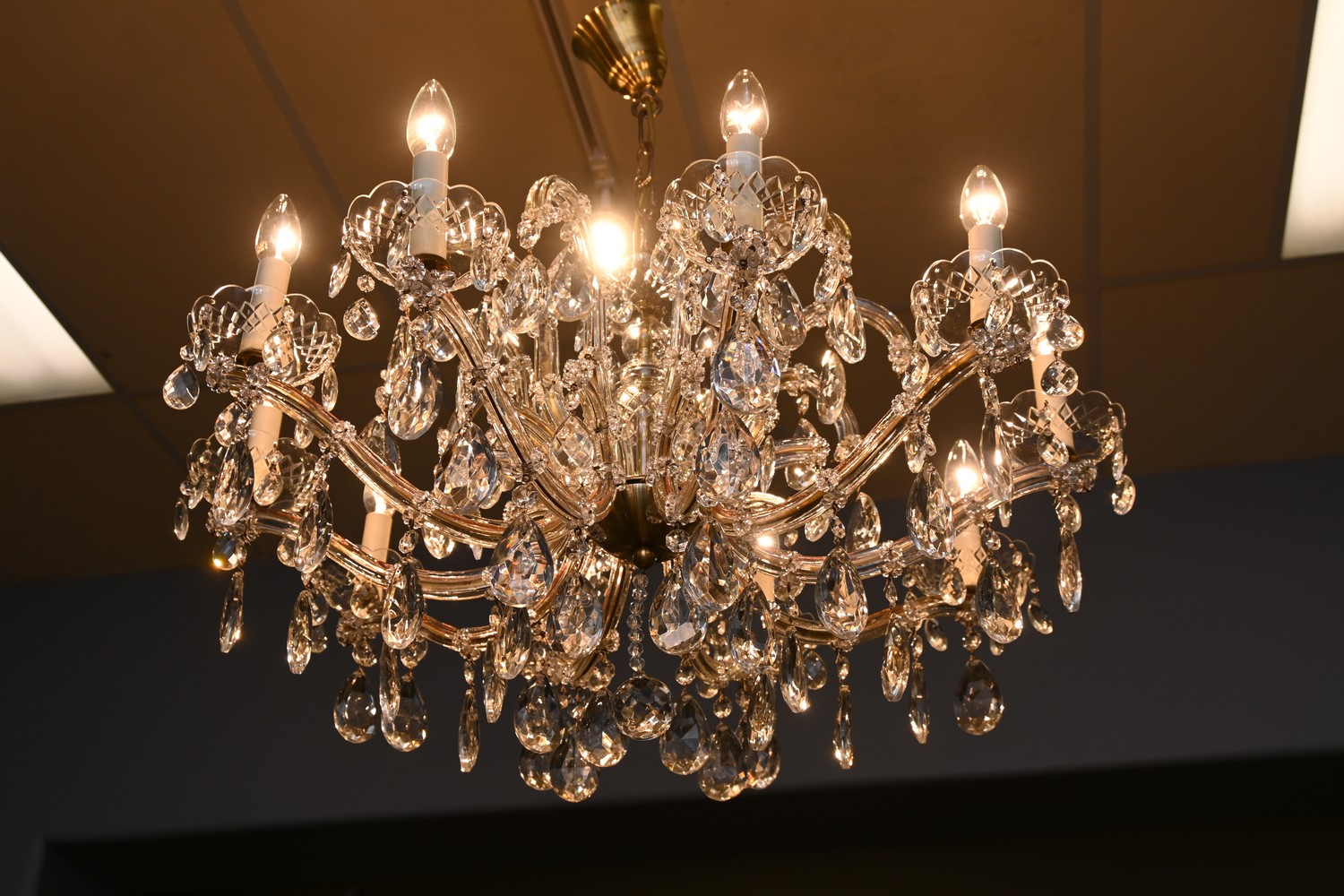 A TEN BRANCH MID 20TH CENTURY ITALIAN MARIE THERESE CRYSTAL CHANDELIER (75H X 78D CM) (LEONARD JOEL DELIVERY SIZE: X-LARGE)