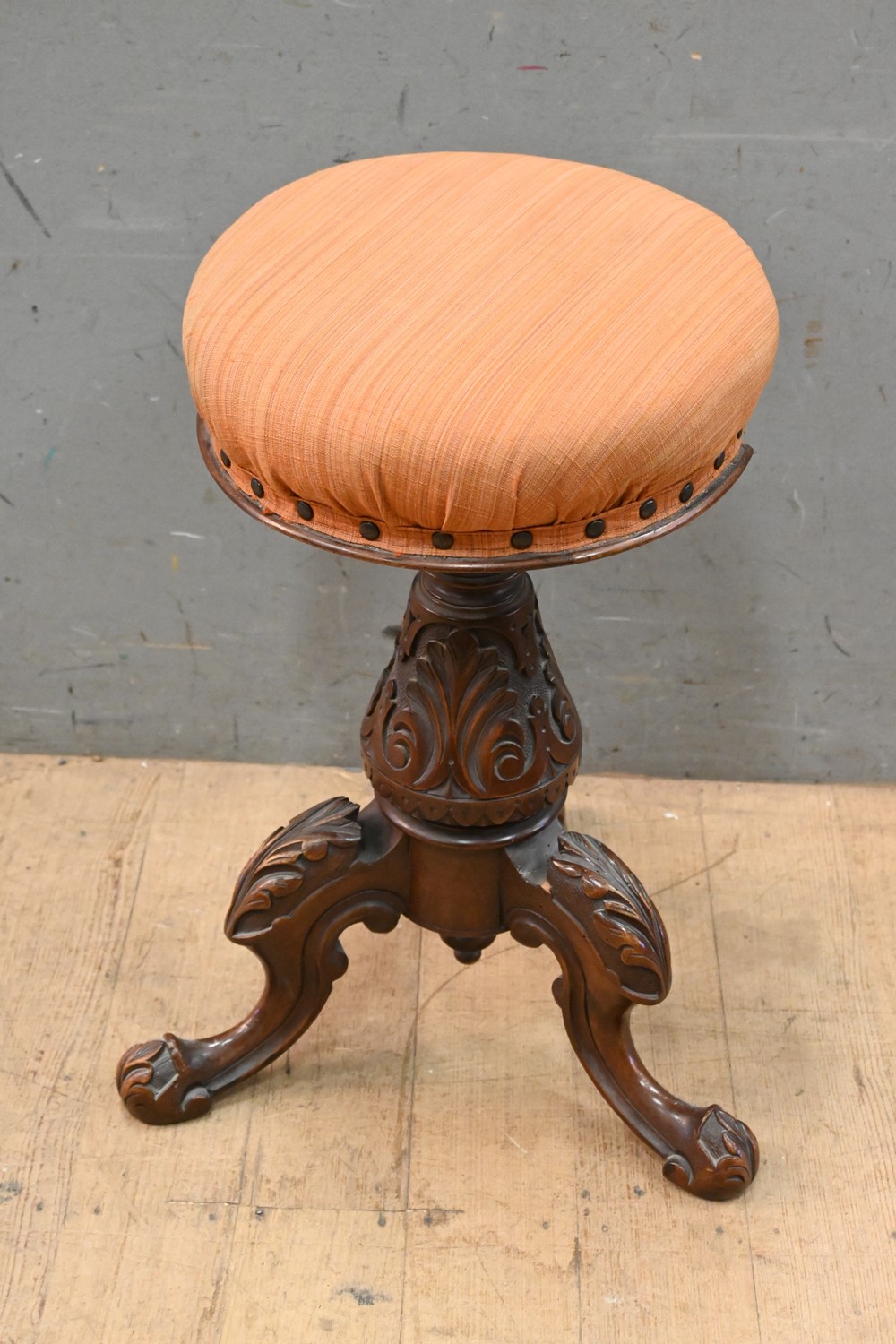 A VICTORIAN CARVED WALNUT PIANO STOOL (A/F) (57H X 40D CM) (LEONARD JOEL DELIVERY SIZE: MEDIUM)
