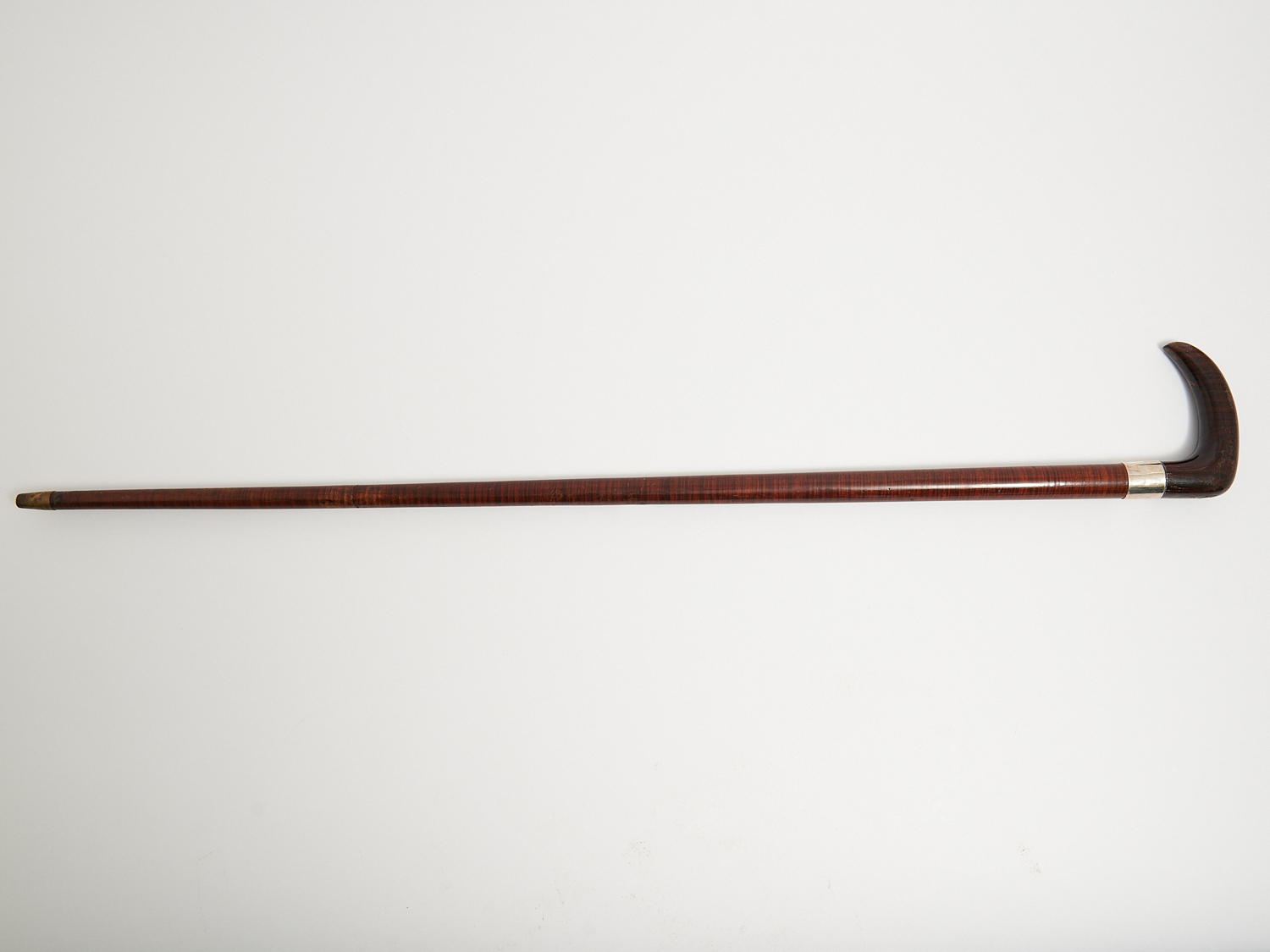 A WOODEN WALKING STICK WITH STERLING SILVER COLLAR L.87CM, LEONARD JOEL LOCAL DELIVERY: SMALL