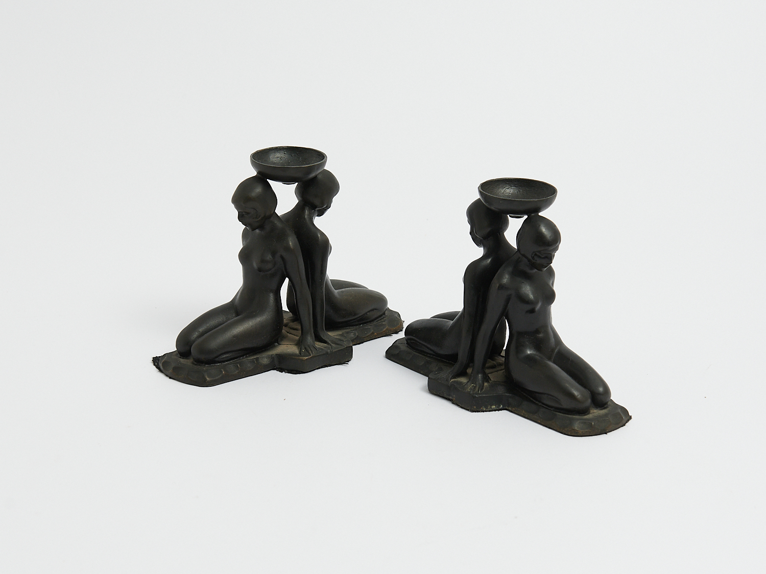 A PAIR OF ART DECO STYLE METAL CANDLESTICKS W.18 CM, LEONARD JOEL LOCAL DELIVERY: SMALL