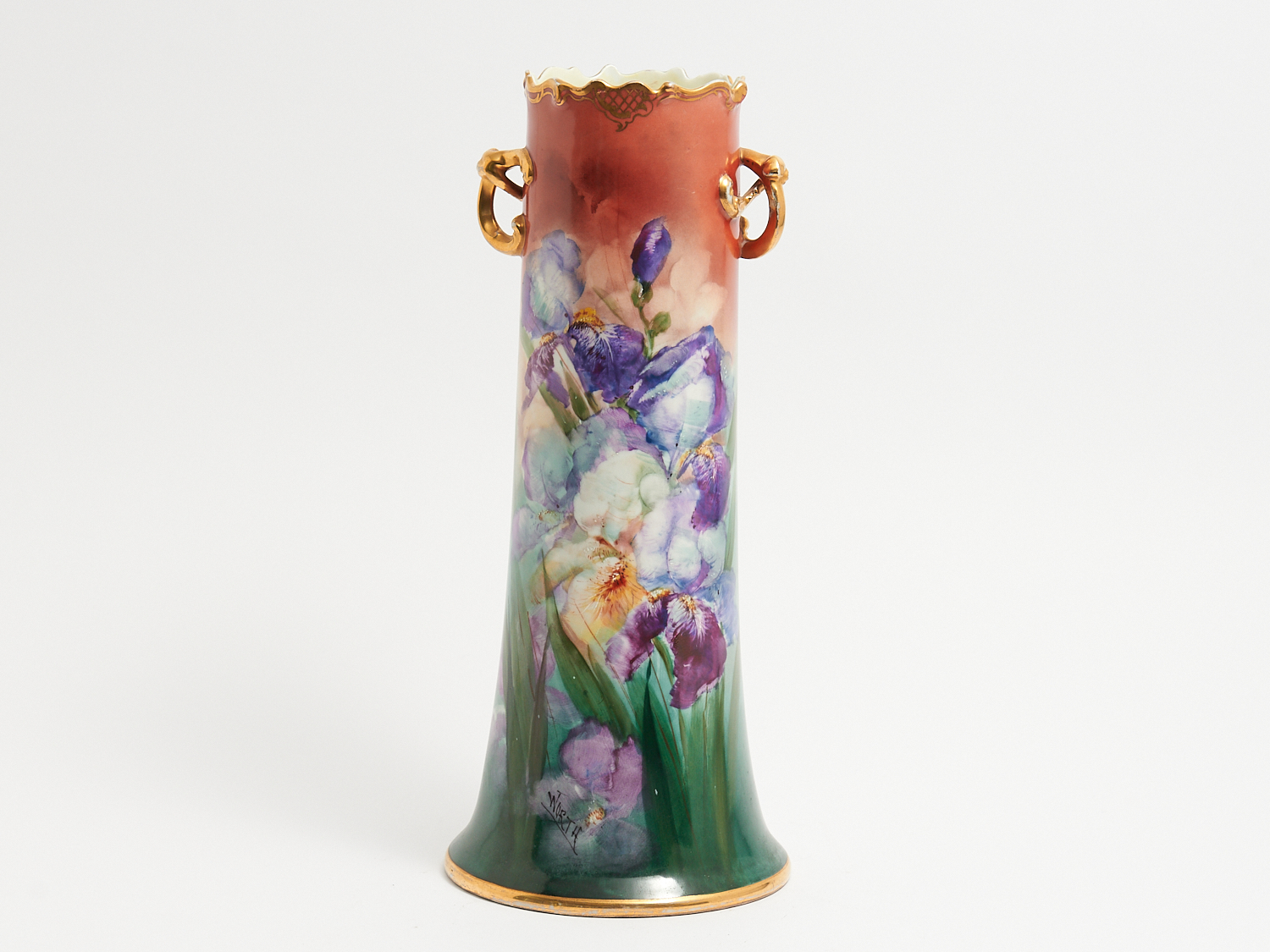 A LIMOGES HAND PAINTED PORCELAIN VASE WITH FLORAL DECORATION, SIGNED WILLIAM GUERIN & CO H.38 CM, LEONARD JOEL LOCAL DELIVERY: MEDIUM