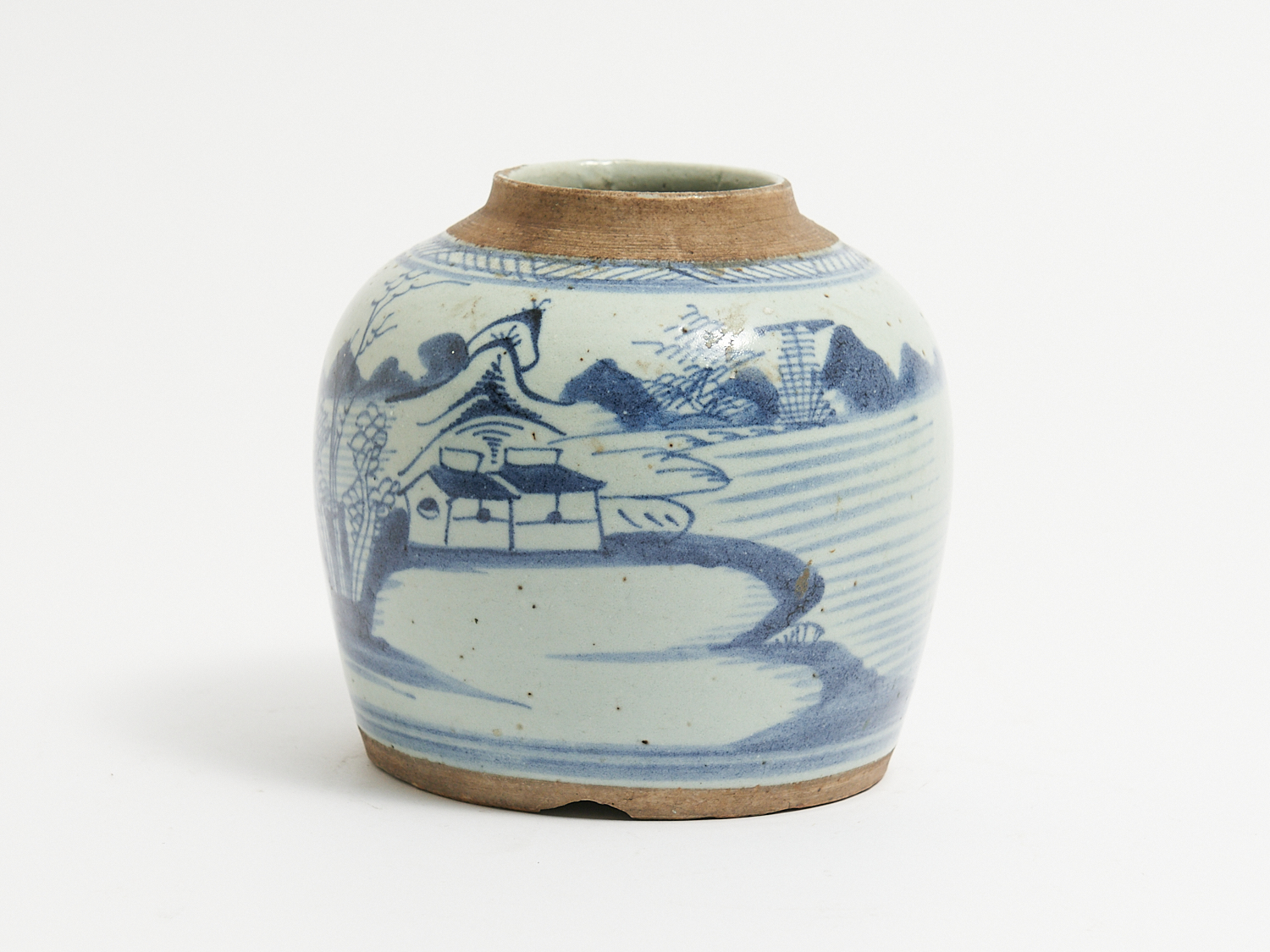 A CHINESE BLUE AND WHITE GINGER JAR H.14CM (CHIP TO BASE), LEONARD JOEL LOCAL DELIVERY: SMALL