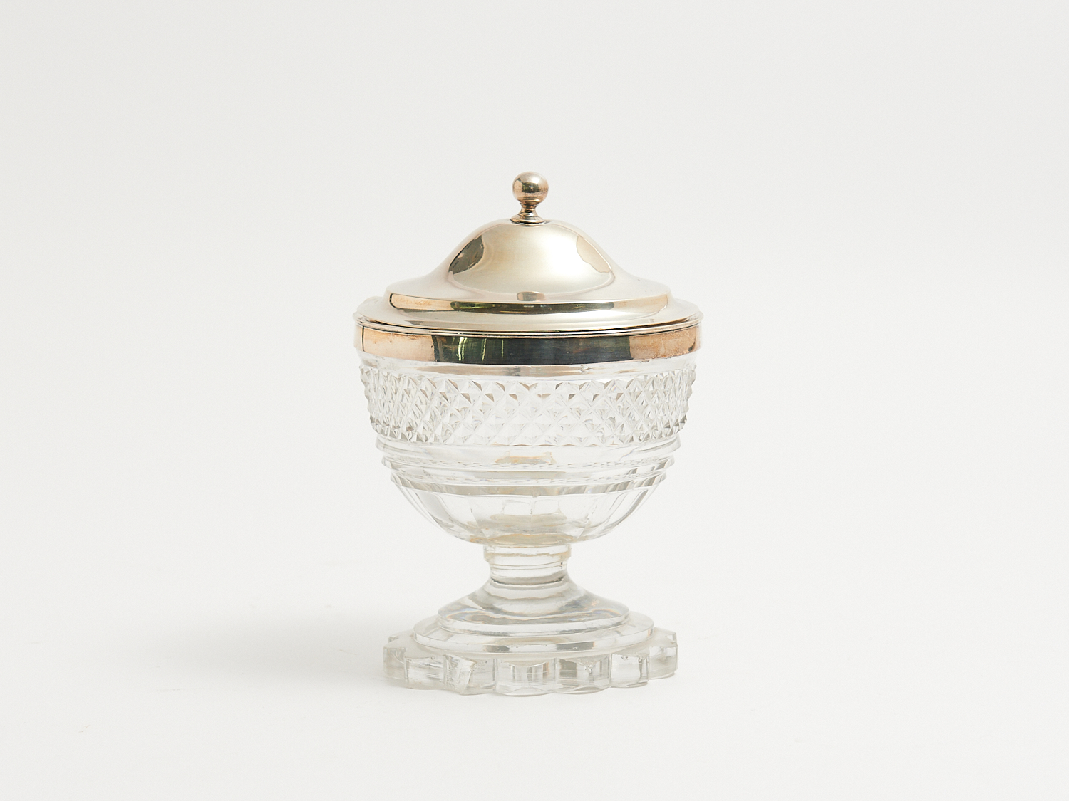 A GEORGE III SILVER-MOUNTED AND COVERED CONDIMENT DISH, THE SILVER BY PAUL STORR, LONDON, 1802, H.21.5CM (A/F), LEONARD JOEL LOCAL DELIVERY: SMALL