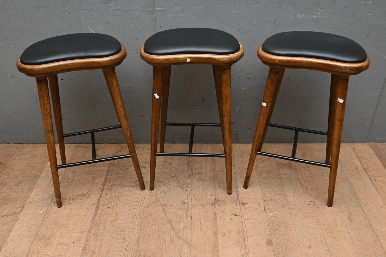 A SET OF THREE KLEBER STYLE OAK BARSTOOLS ( 69H X 72W X 32D CM) (LEONARD JOEL DELIVERY SIZE: LARGE)
