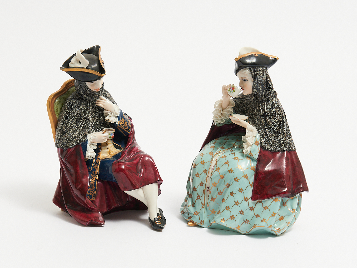 TWO CAPODIMONTE FIGURES H.20CM (TALLEST), LEONARD JOEL LOCAL DELIVERY: SMALL