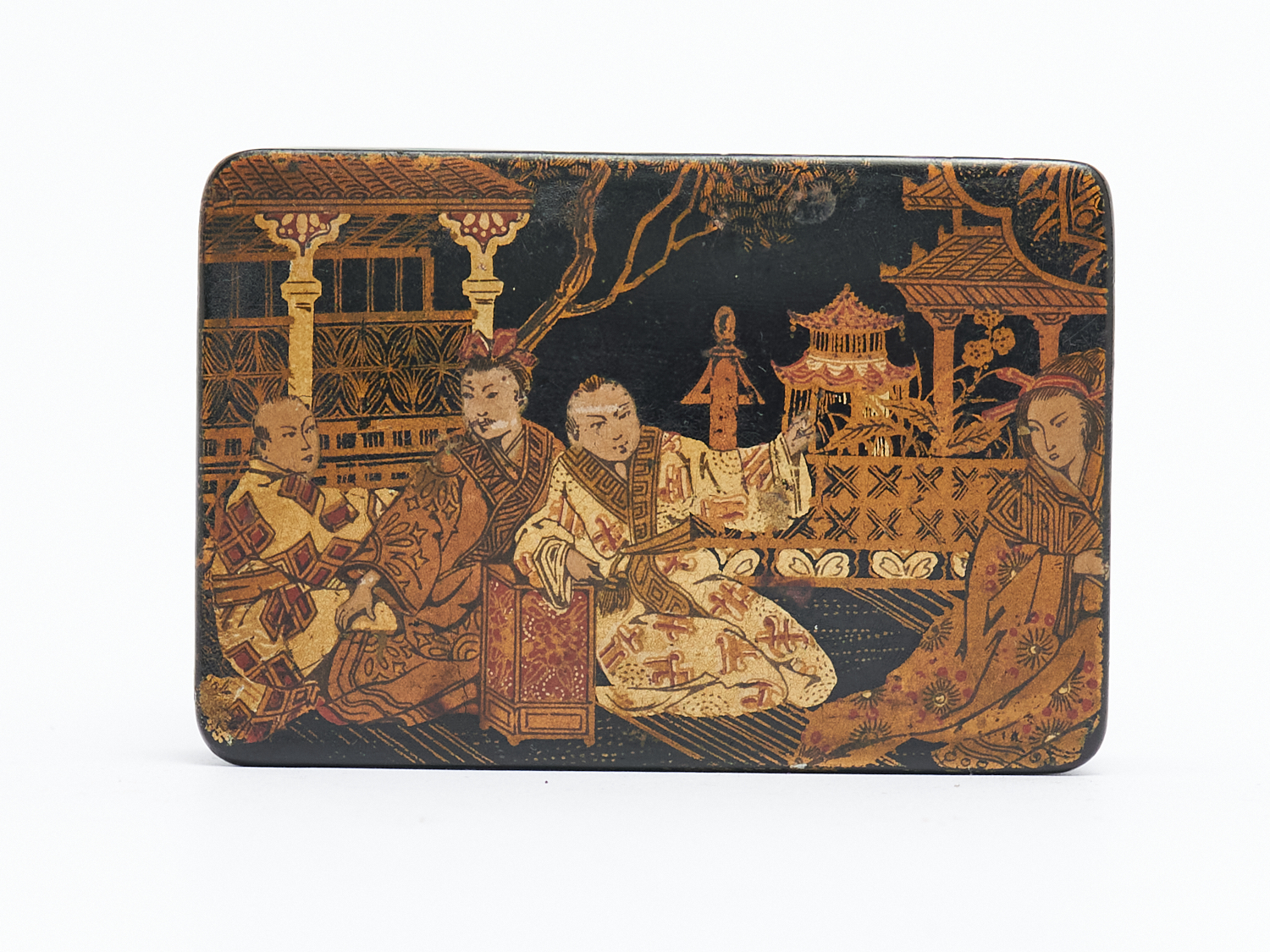 A CHINOISERIE PAPIER MACHE BOX H.2.5CM X W.9.2CM X D.6.2CM, LEONARD JOEL LOCAL DELIVERY: SMALL