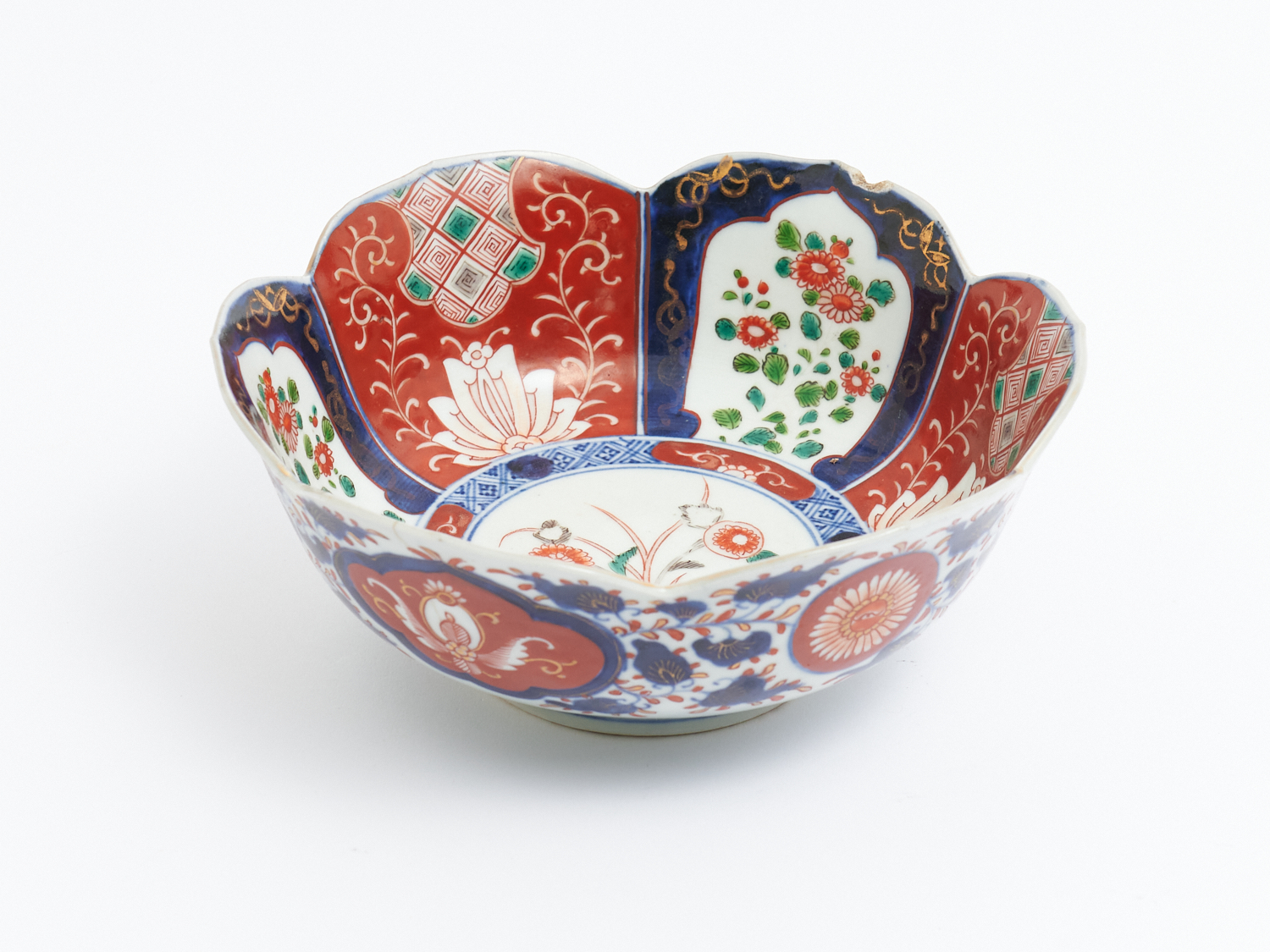 A JAPANESE IMARI BOWL (A/F) DIA.21.5CM, LEONARD JOEL LOCAL DELIVERY: SMALL
