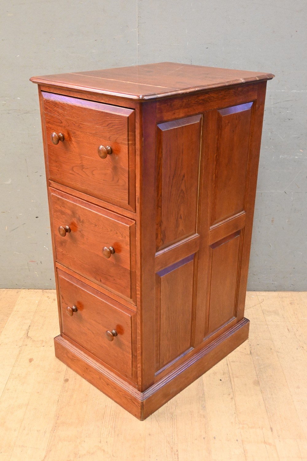 AN AMERICAN OAK THREE DRAWER FILING CABINET (111H X 52W X 67D CM) (PLEASE NOTE THIS HEAVY ITEM MUST BE REMOVED BY CLIENTS OR CARRIERS AT THE CUSTOMERS EXPENSE. LEONARD JOEL STAFF CANNOT ASSIST CARRYING THIS ITEM)