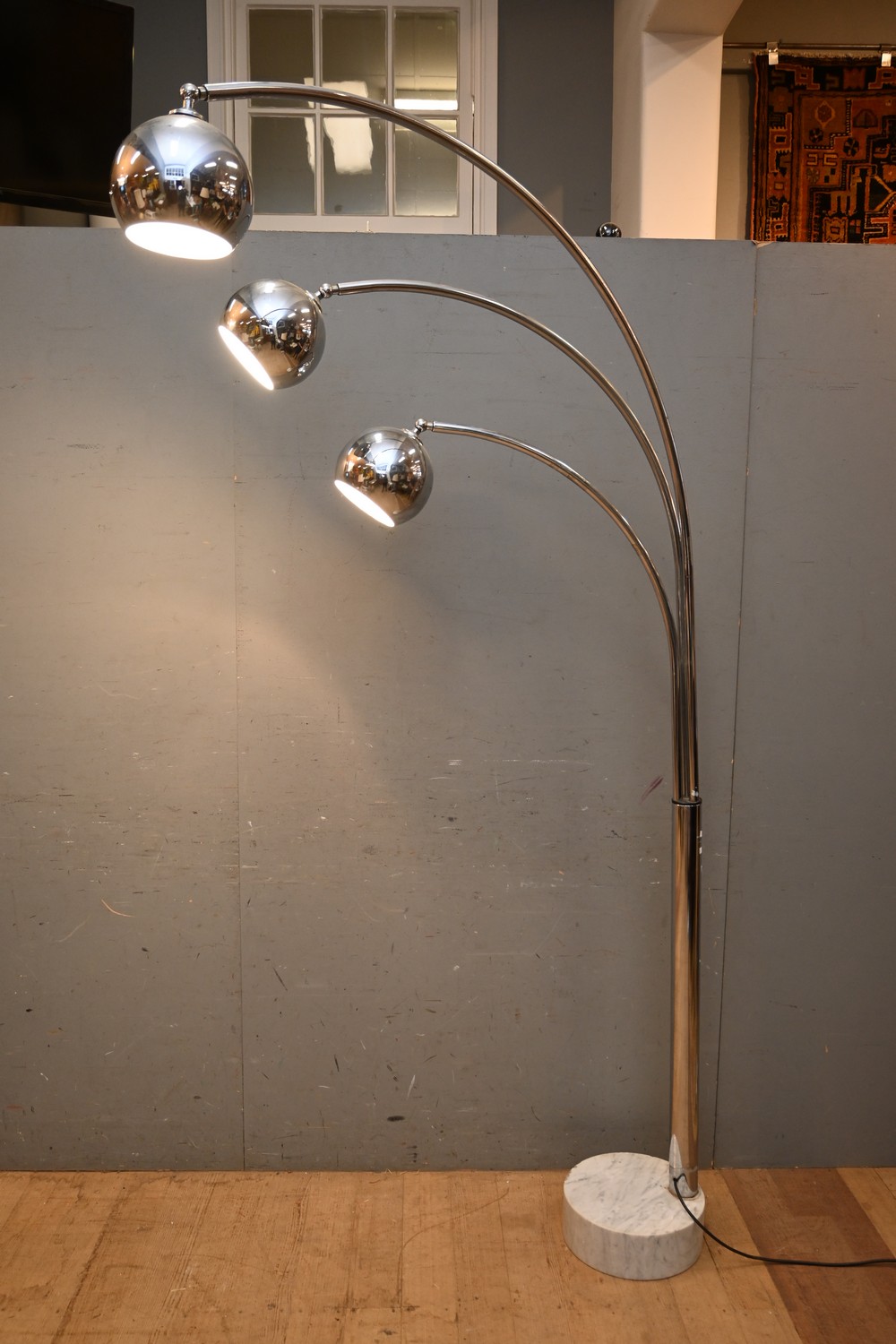 AN ITALIAN THREE GLOBE CHROME AND MARBLE STANDARD LAMP (A/F) (210 CM H) (PLEASE NOTE THIS HEAVY ITEM MUST BE REMOVED BY CLIENTS OR CARRIERS AT THE CUSTOMERS EXPENSE. LEONARD JOEL STAFF CANNOT ASSIST CARRYING THIS ITEM)
