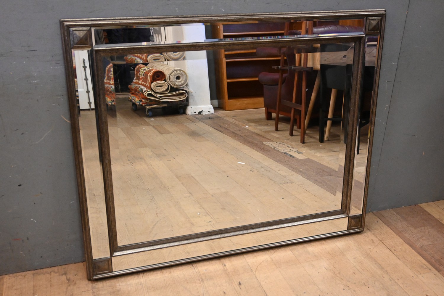 A CLASSICAL STYLE SILVER FINISHED MIRROR (101H X 127W CM) (LEONARD JOEL DELIVERY SIZE: LARGE)
