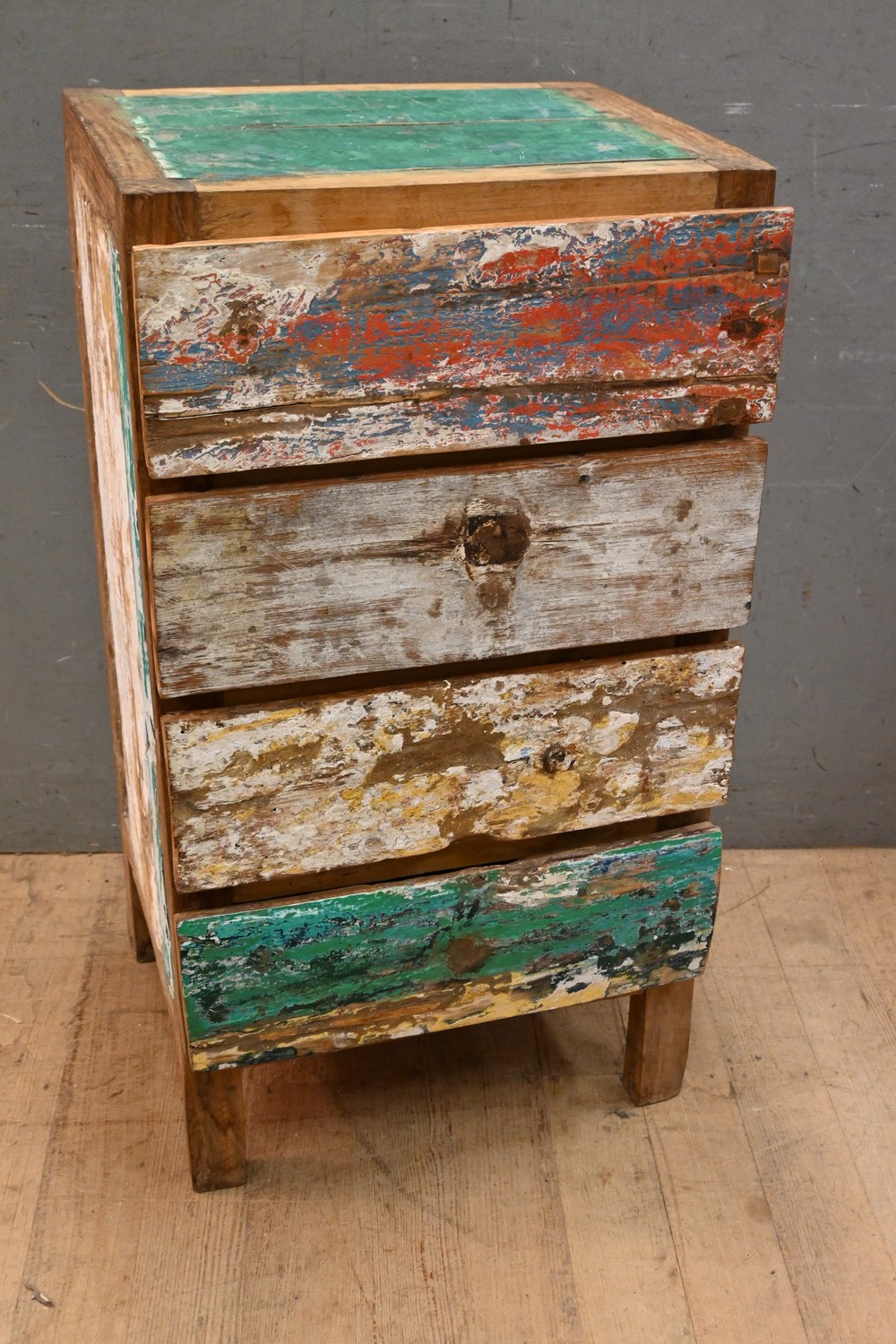 A RUSTIC PAINTED FOUR DRAWER CHEST (A/F) (103H X 55W X 49D CM) (PLEASE NOTE THIS HEAVY ITEM MUST BE REMOVED BY CLIENTS OR CARRIERS AT THE CUSTOMERS EXPENSE. LEONARD JOEL STAFF CANNOT ASSIST CARRYING THIS ITEM)