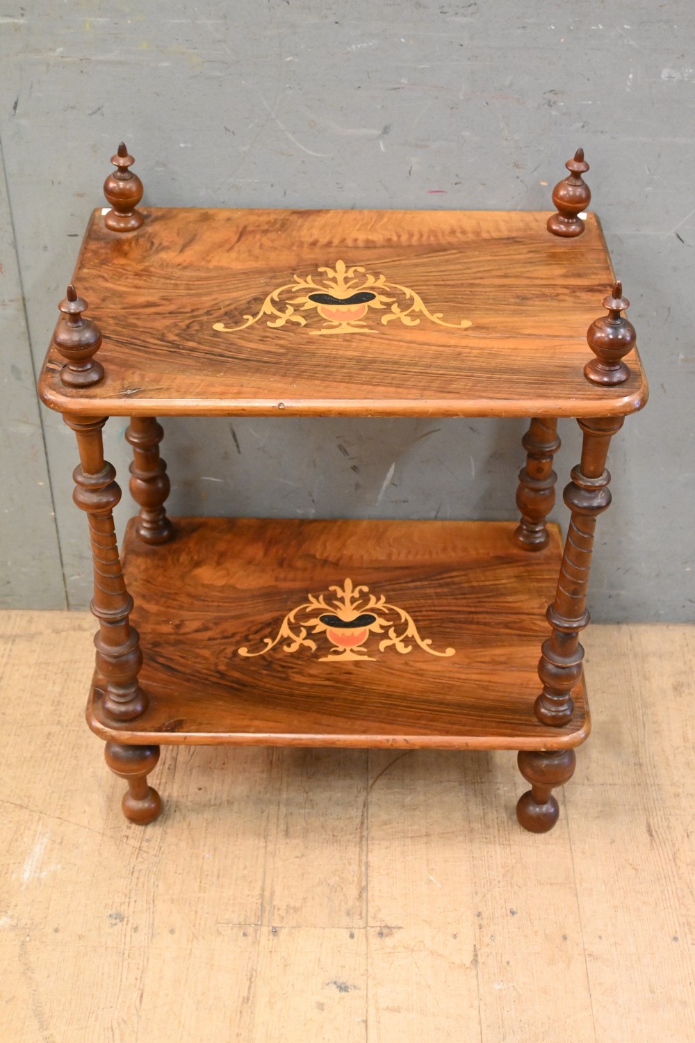 A TWO TIER INLAID OCCASIONAL TABLE (67H X 51W X 35D CM) (LEONARD JOEL DELIVERY SIZE: MEDIUM)
