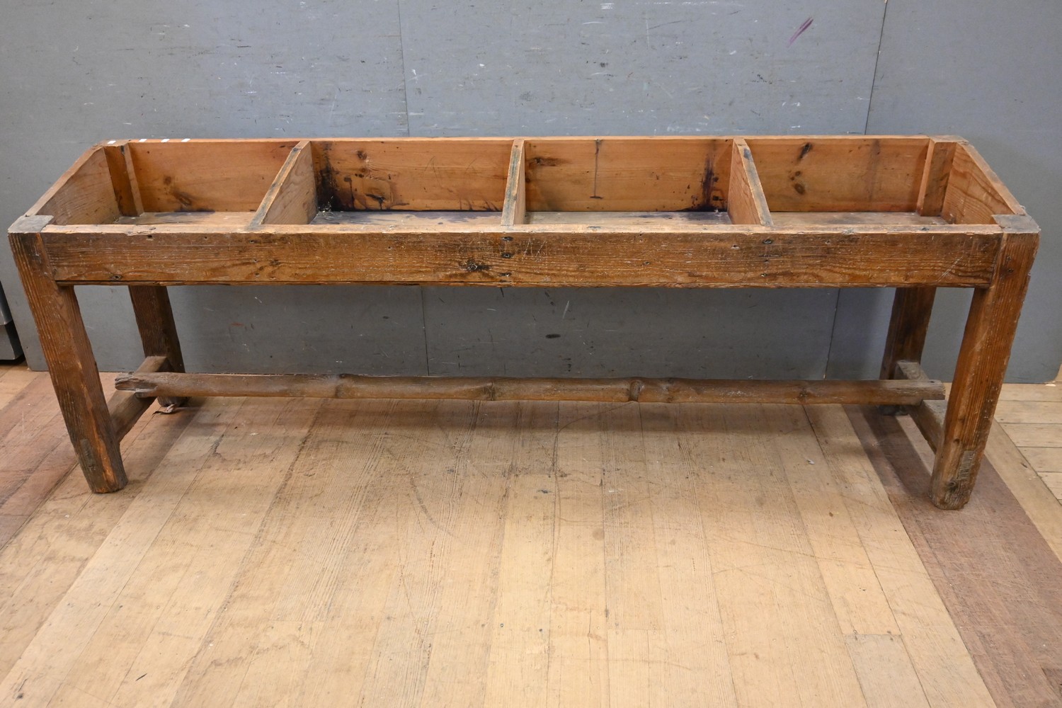 AN ANTIQUE OAK BOOT TROUGH (A/F) (SIGNS OF BORER ) ( 72H X 199W X 46D CM)