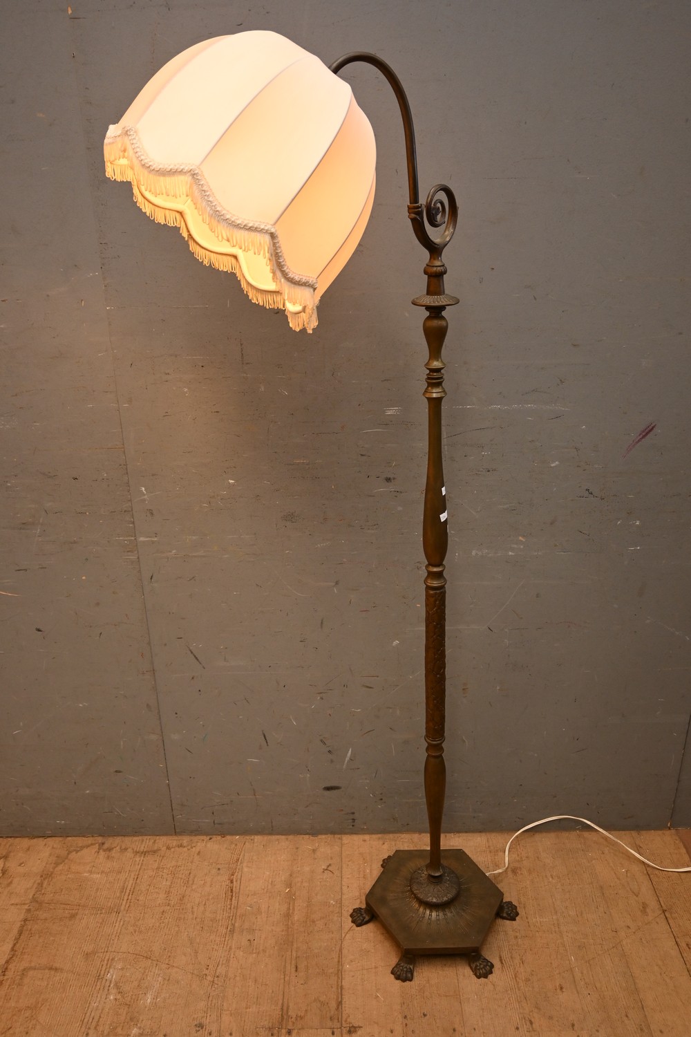 A DECORATIVE SOLID BRASS STANDARD LAMP (156 CM H) (A/F) (LEONARD JOEL DELIVERY SIZE: MEDIUM)