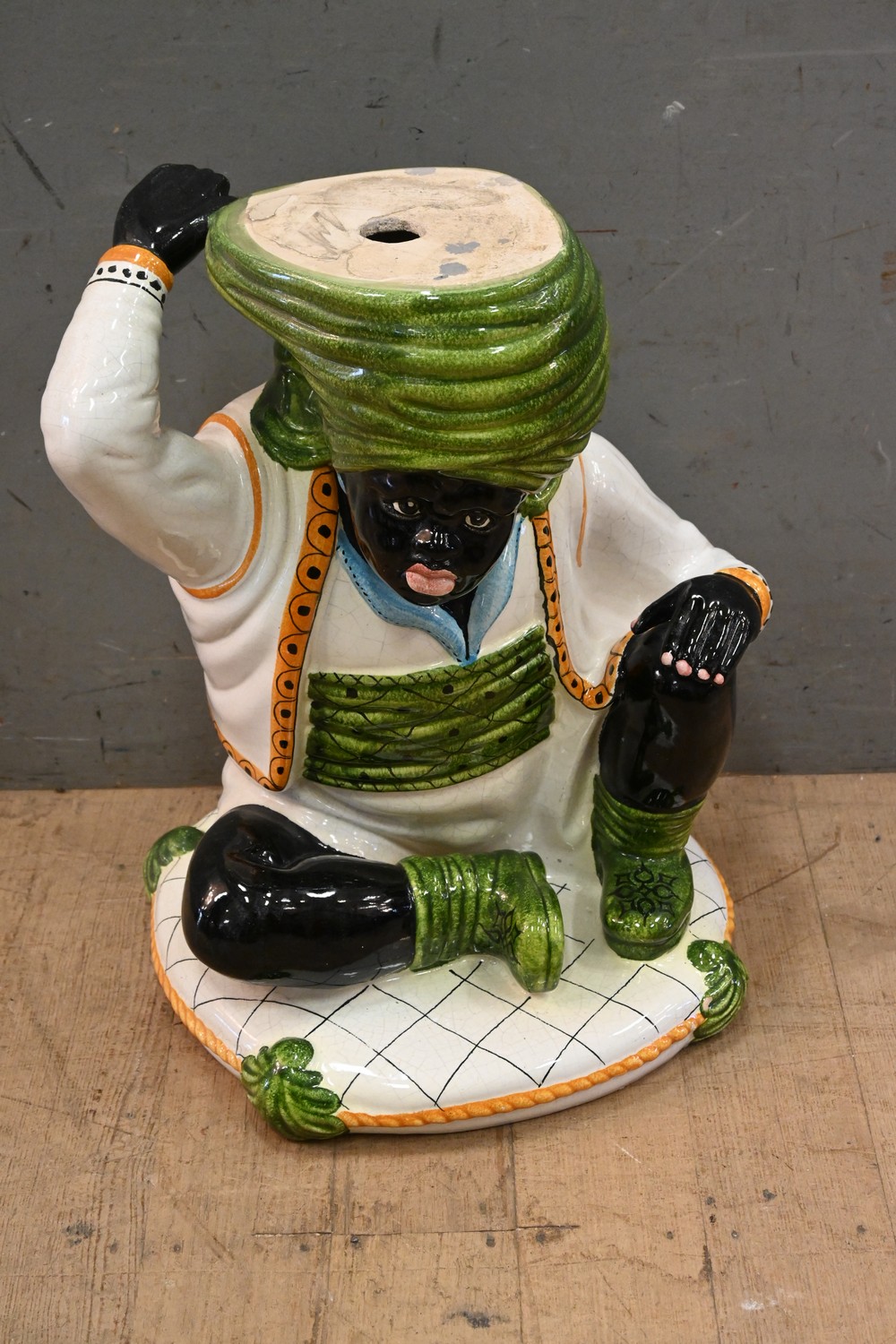 A 1940S SIGNED ITALIAN GLAZED CERAMIC BLACKAMOOR FORM PLANT STAND ( 54H X 42W X 43D CM) (LEONARD JOEL DELIVERY SIZE: LARGE)