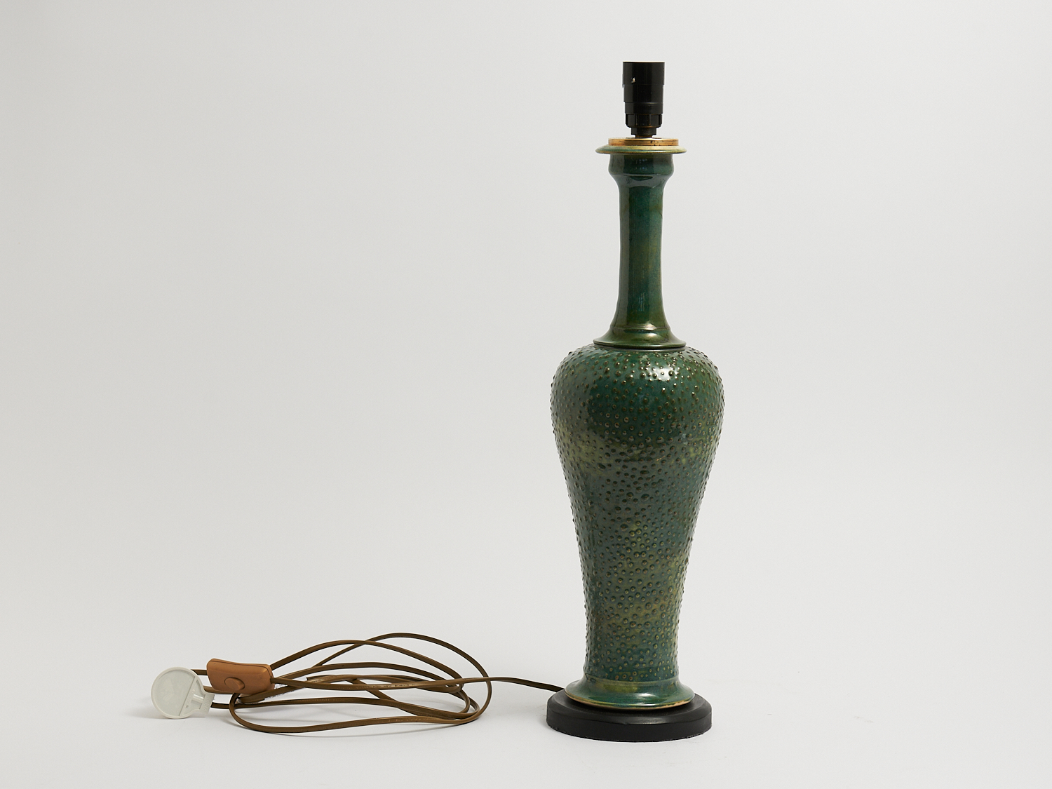 A DANISH GLAZED CERAMIC LAMP ON WOODEN BASE H.57.5CM, LEONARD JOEL LOCAL DELIVERY: MEDIUM