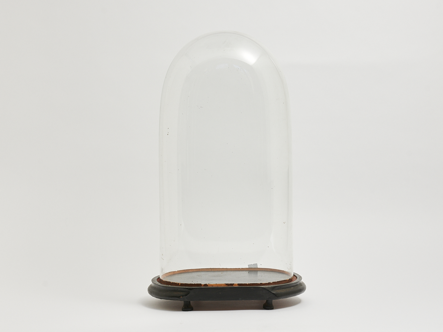 A FRENCH OVAL GLASS DOME ON WOODEN BASE H.57.5CM, LEONARD JOEL LOCAL DELIVERY: MEDIUM