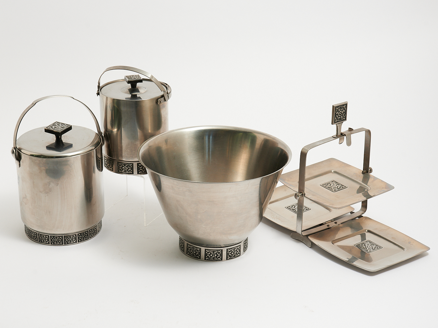A COLLECTION OF 4 X RETRO WHILTSHIRE STAINLESS STEEL COCKTAIL ITEMS H.18CM X DIA.27CM (LARGEST), LEONARD JOEL LOCAL DELIVERY: MEDIUM