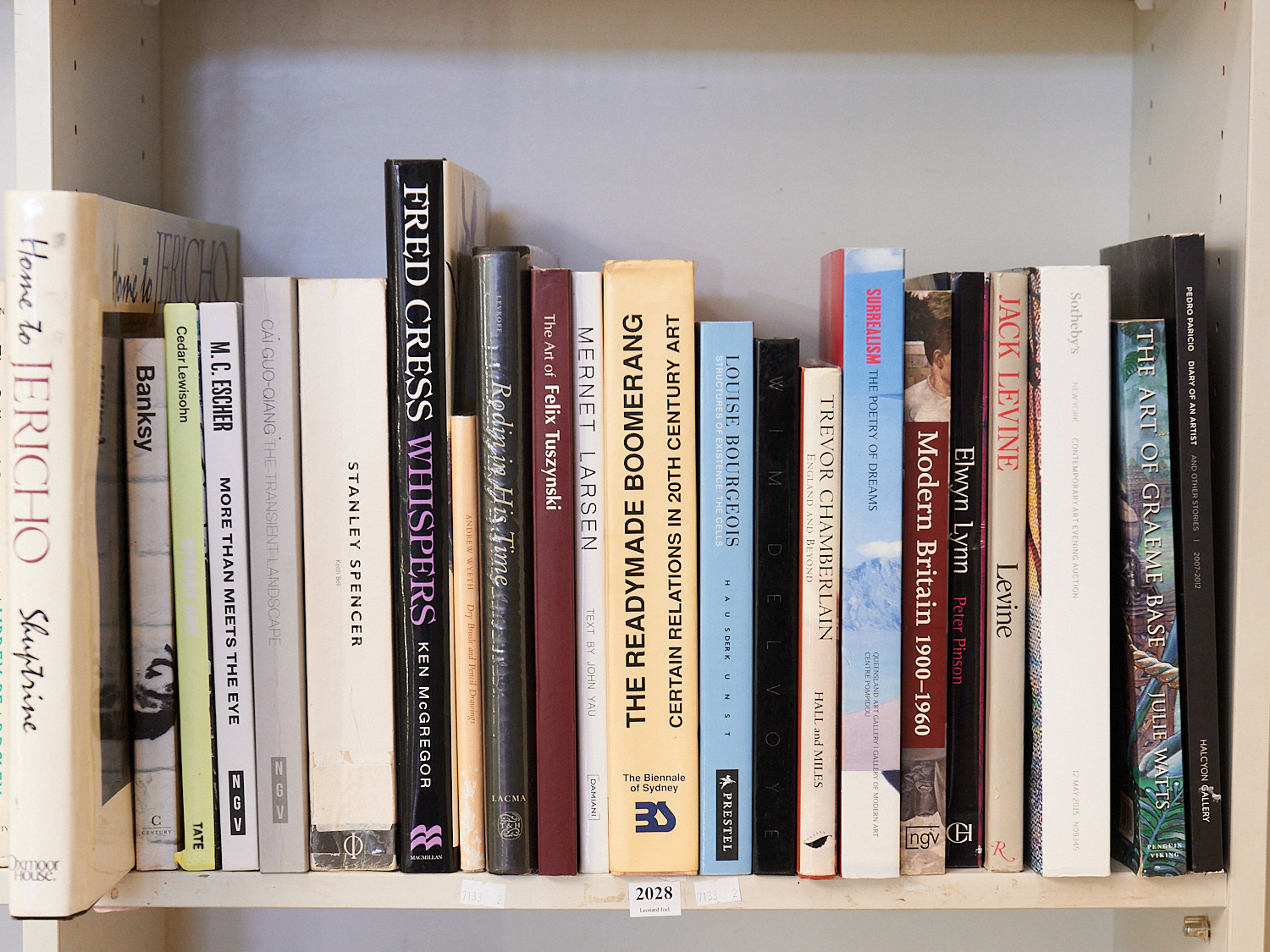 SHELF OF 20TH CENTURY ART REFERENCE INCLUDING "THE REDDYMADE BOOMERANG", KEITH BELL "STANLEY SPENCER", "WIM DELVOYE", "RODIN IN IT'S TIME", KEN MCGREGOR "FRED CRESS", CEDAR LEWISOHN "STREET ART", LEONARD JOEL LOCAL DELIVERY: MEDIUM