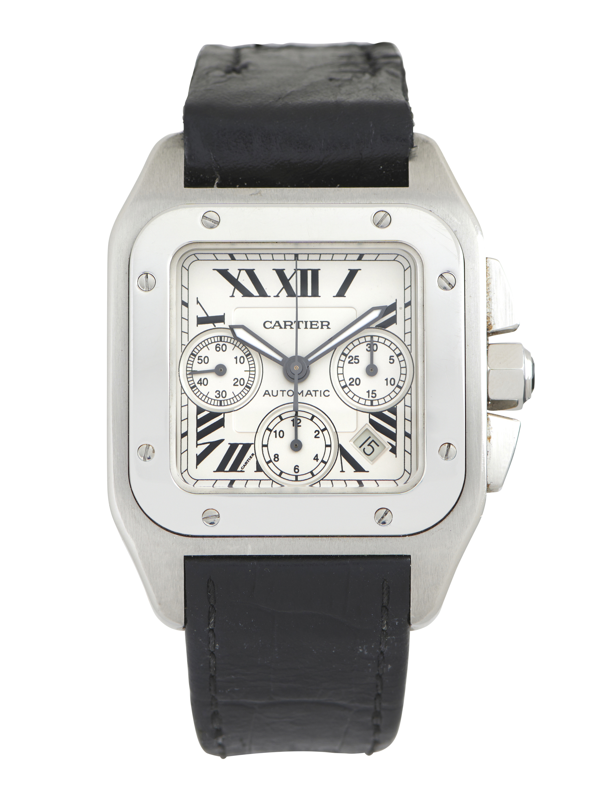 Dial: silvered, Roman numerals, date aperture between 4 and 5