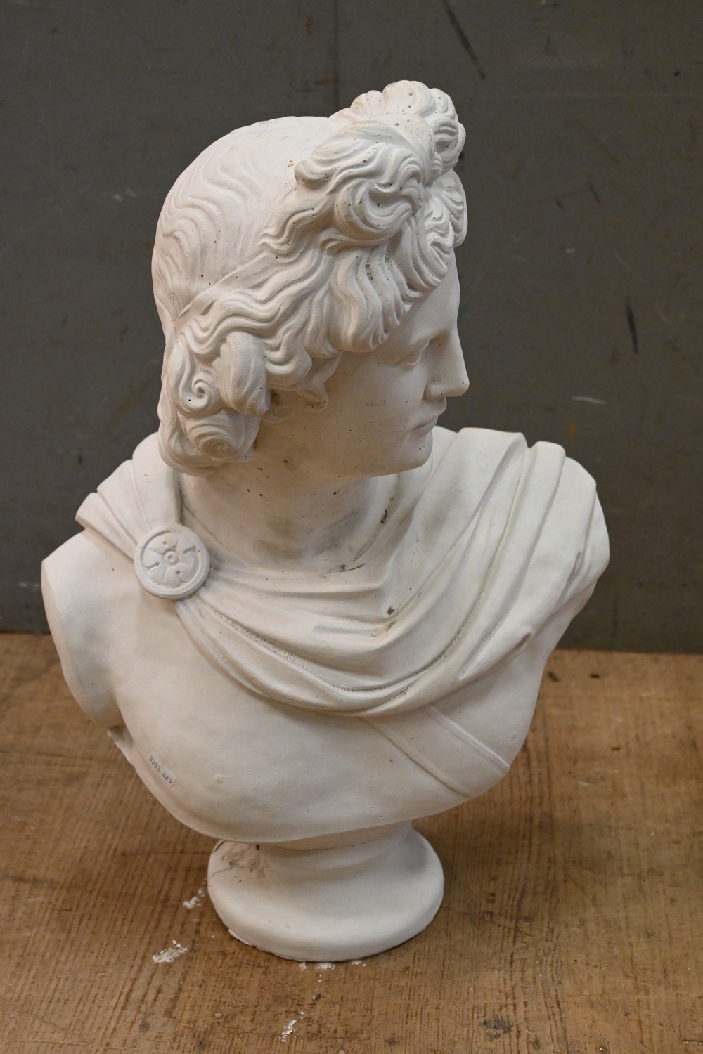 A CONCRETE BUST OF APOLLO (50 CM H) (LEONARD JOEL DELIVERY SIZE: LARGE)
