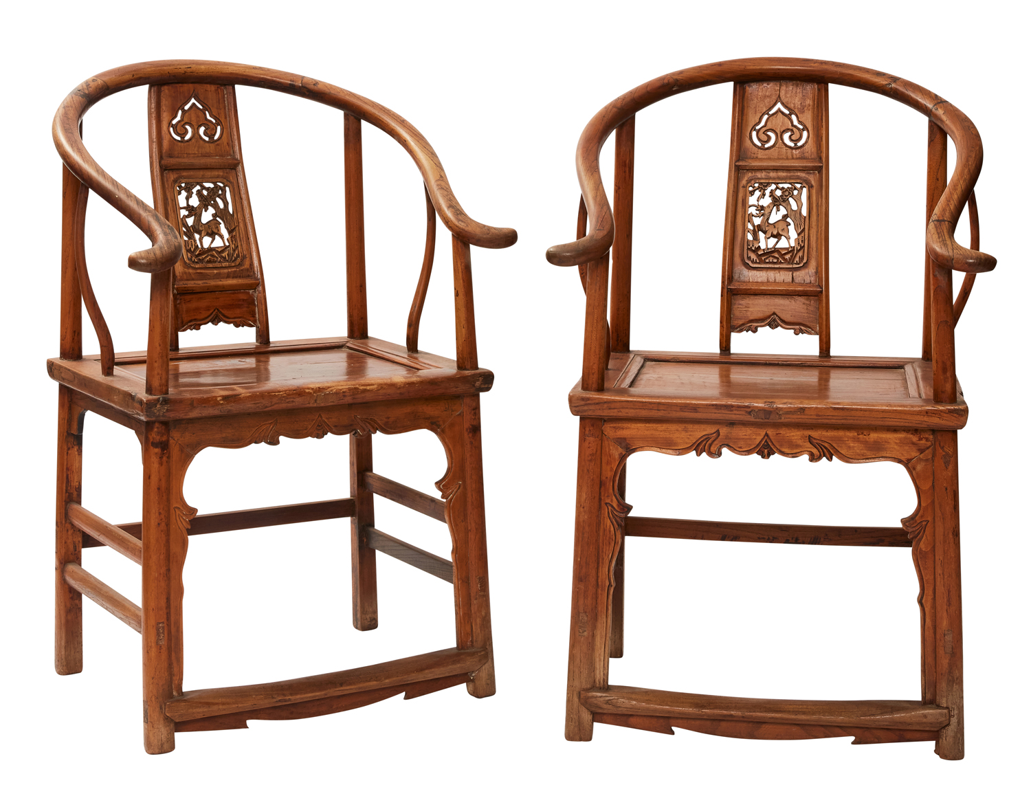 A PAIR OF CHINESE ELM HORSESHOE-BACK CHAIRS