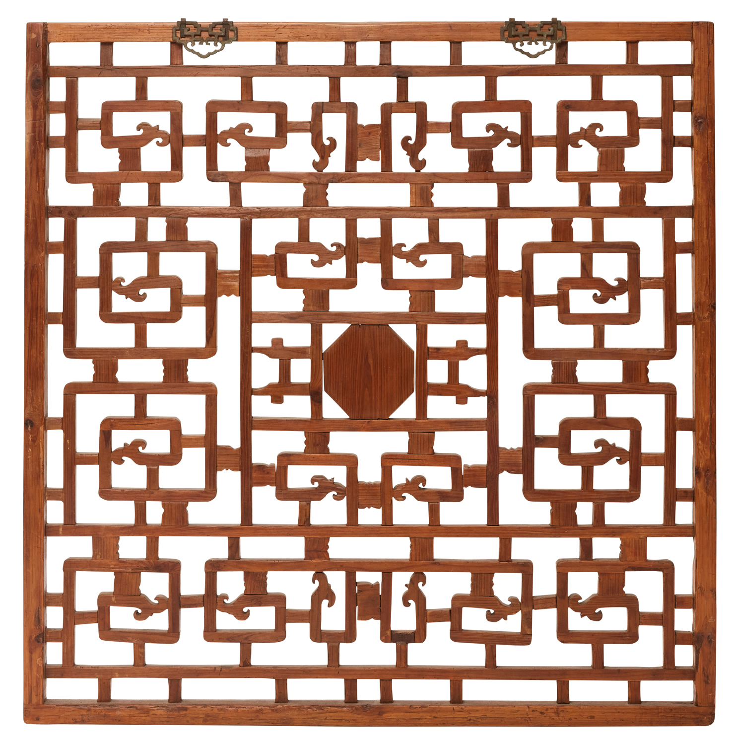 Qing Dynasty (1644-1912), second half 19th century, centred with a panel of the eight tangrams within carved scrolls and flowerheads.