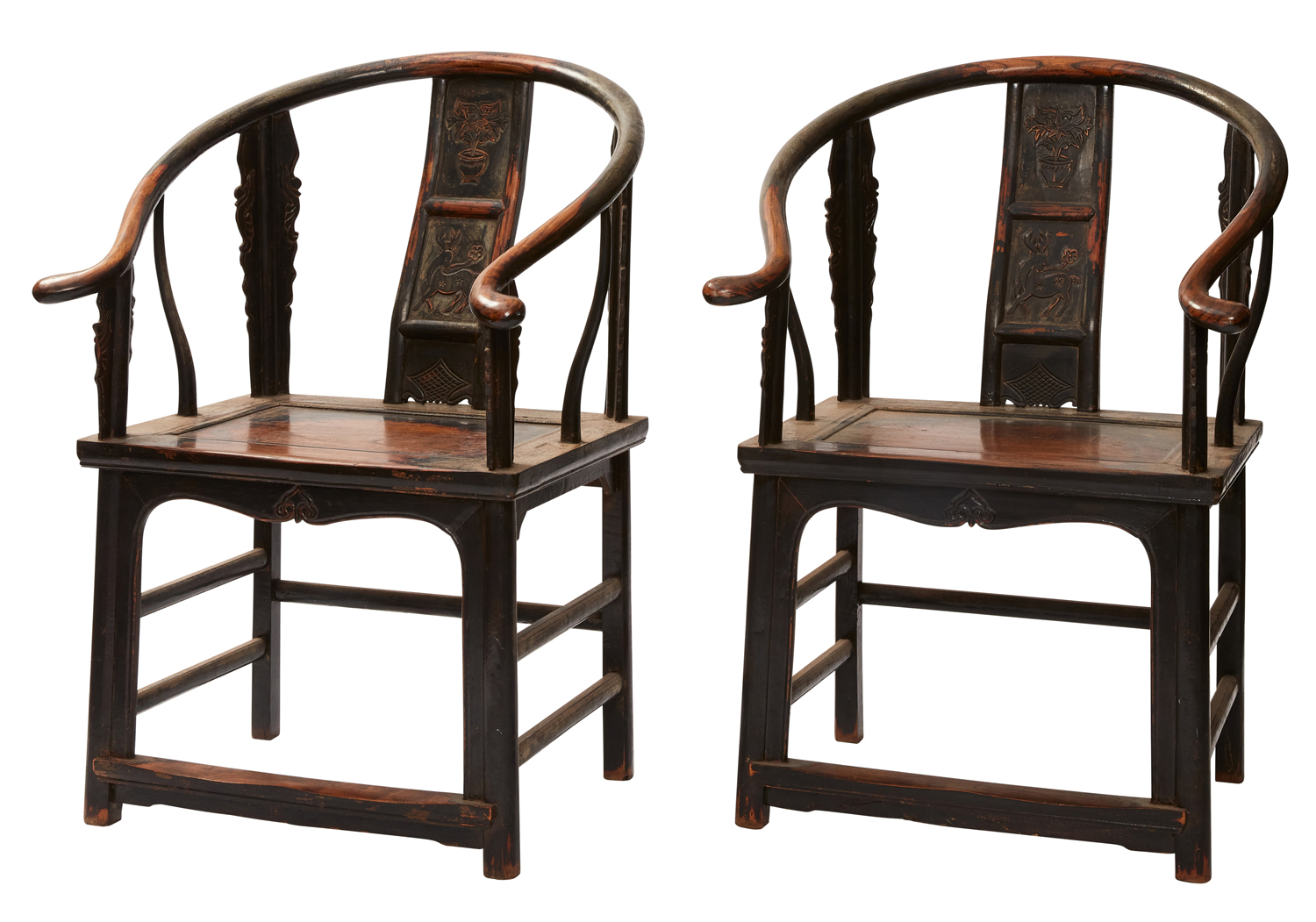 A PAIR OF CHINESE ELM HORSESHOE-BACK CHAIRS