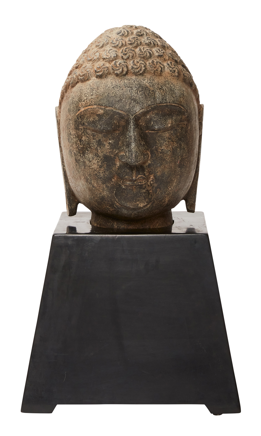 A CHINESE CARVED STONE HEAD OF BUDDHA