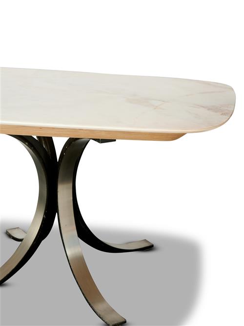 Original italian marble top with small 17cm repair to edge. Minor surface scratches and chips to wood and stainless steel legs, consistent with age and use. This table is structurally sound and in original condition.