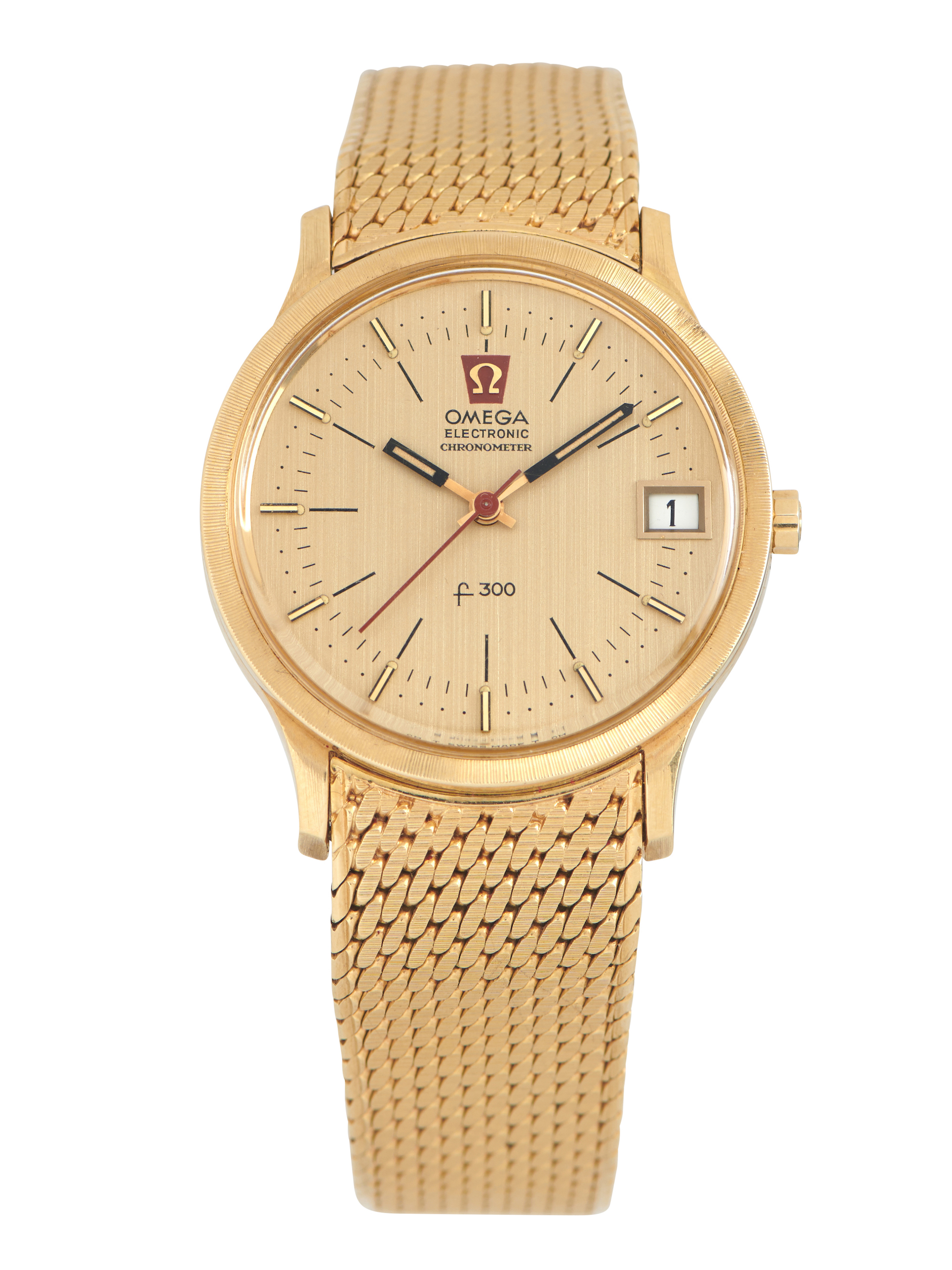 Closure: Omega 18ct gold brushed mesh link and folding clasp