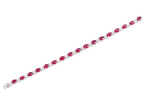 18CT WHITE GOLD, RUBY AND DIAMOND BRACELET