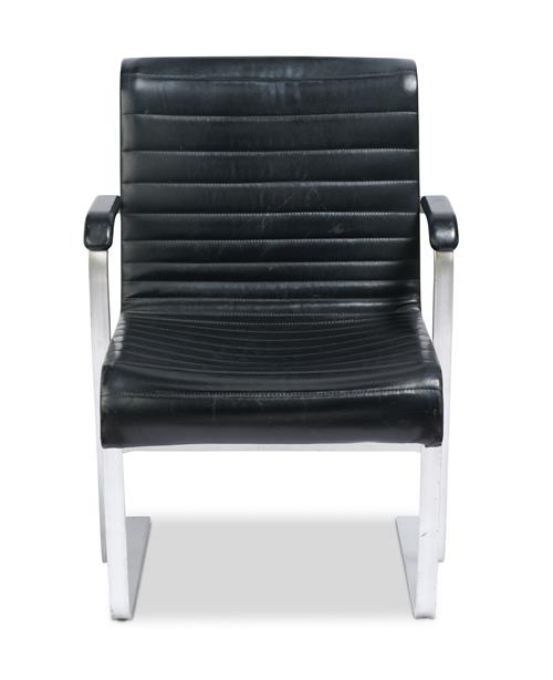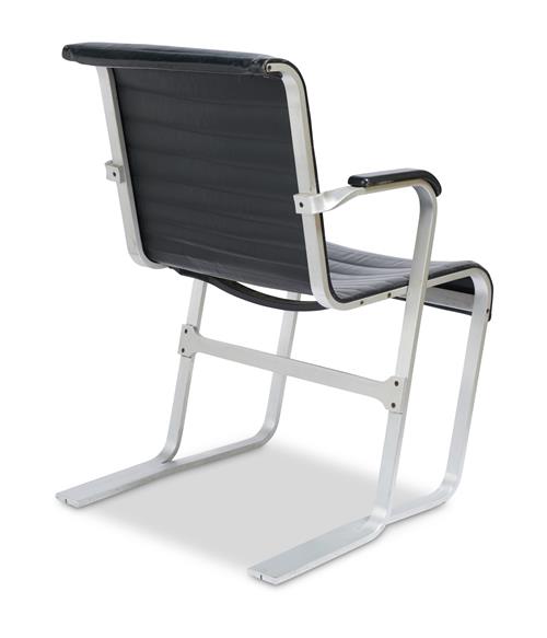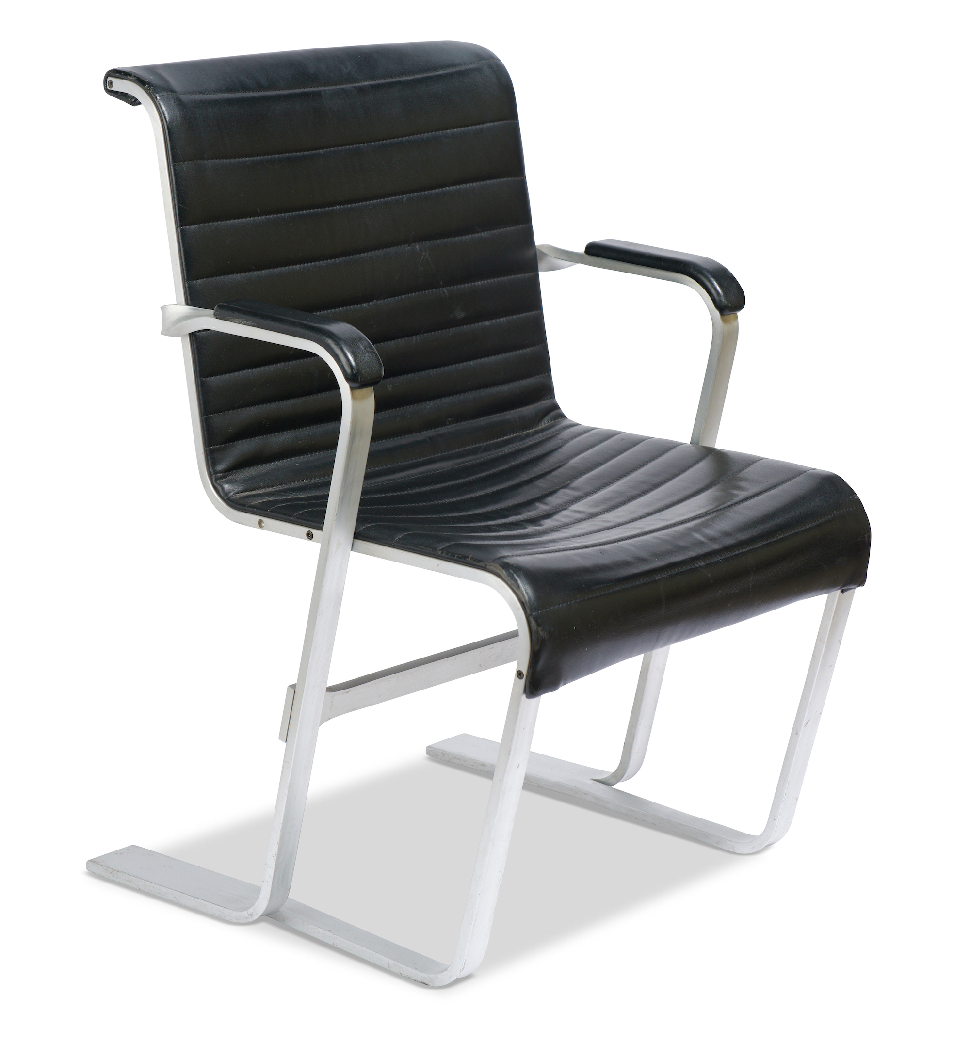 Marks and surface scratches present to leather and solid aluminium frame, all consistent with the age and previous use of the chair. A couple of the screws are missing however they do not effect the structure of the chair. Signs of wear to original black leather. Original condition.