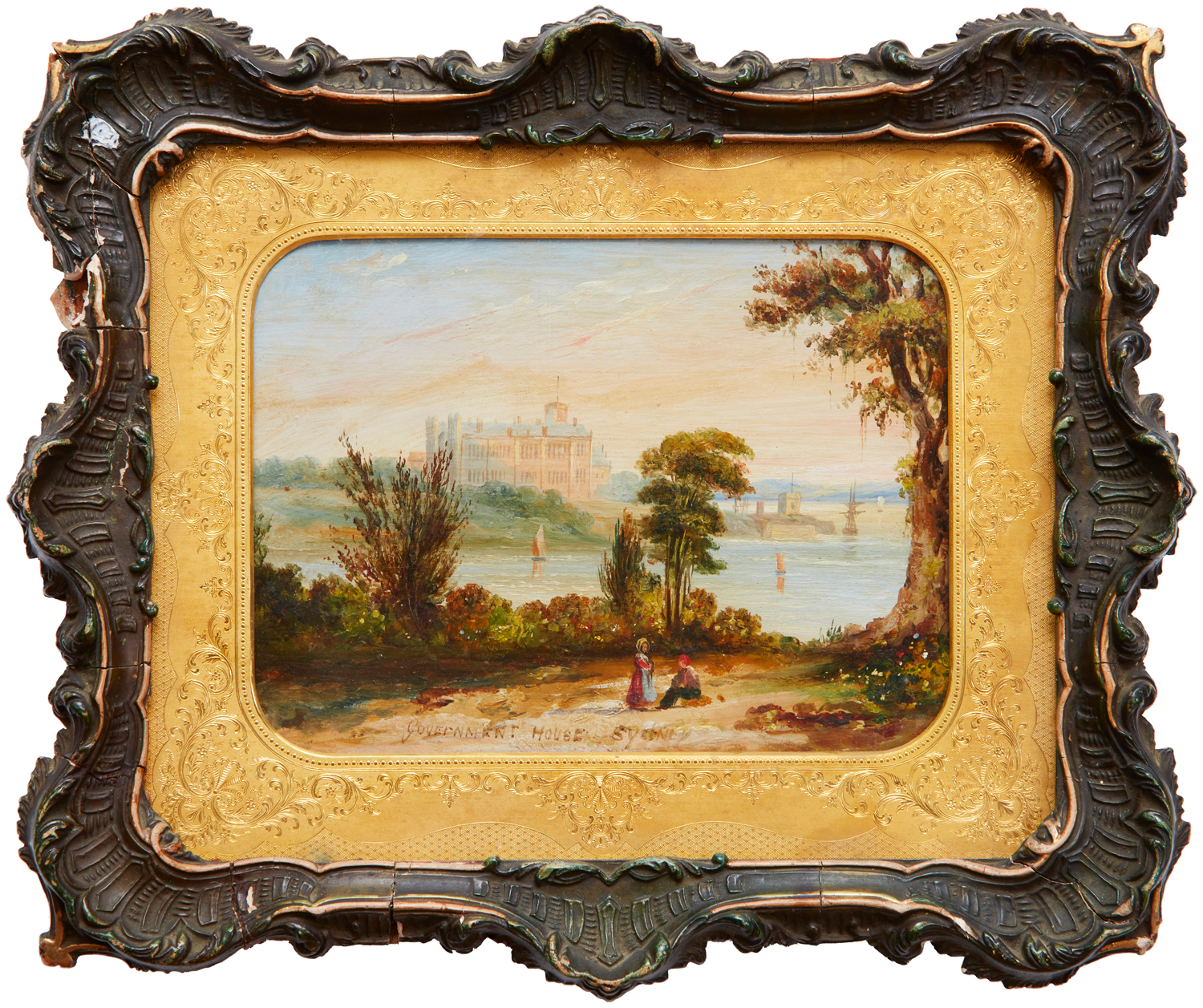 titled lower right (underneath frame): Government House From Botanical Gardens