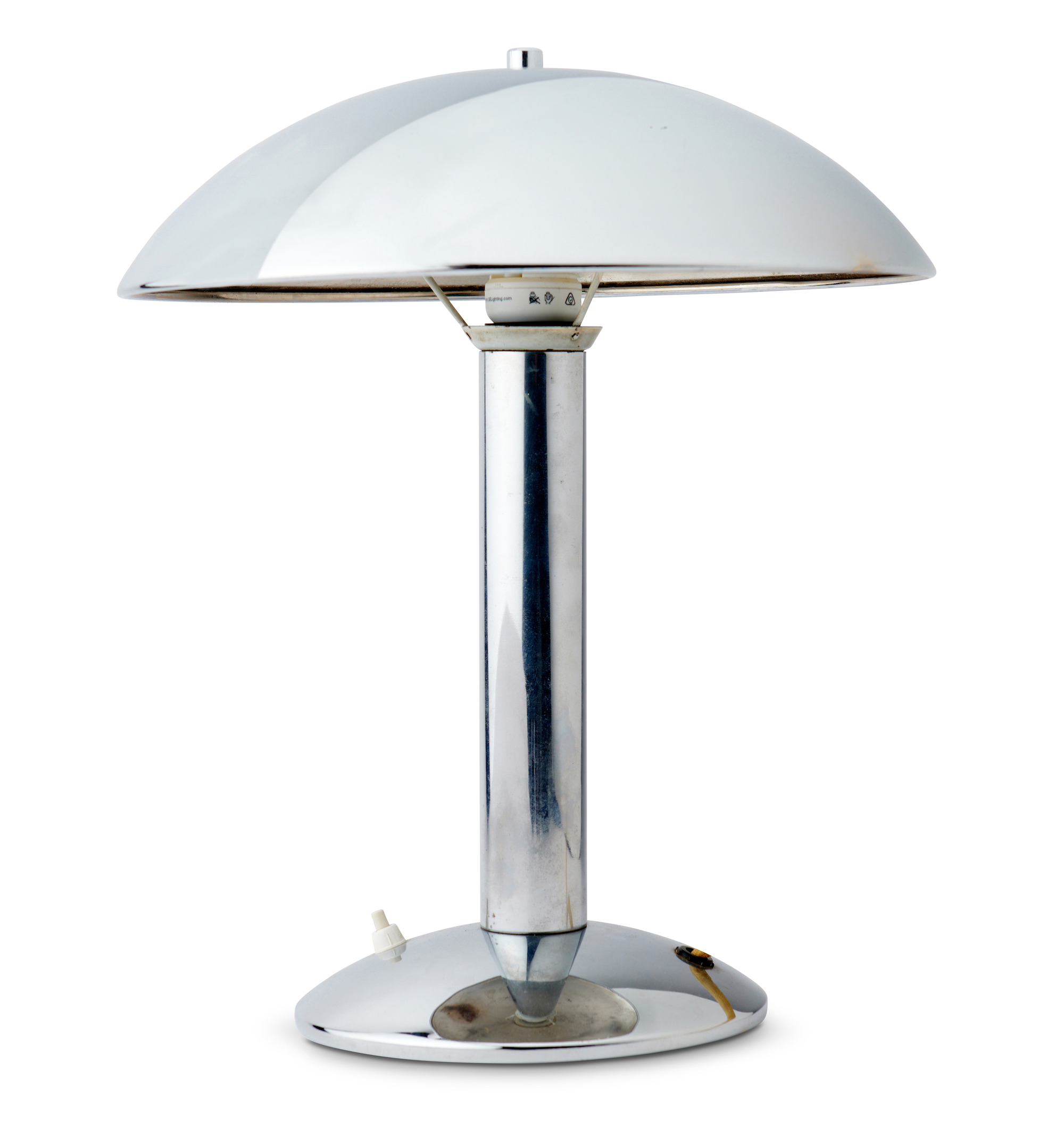 Marks and minor surface scratches present throughout the the light all consistent with its age and previous use. A few very minor dents to the shade. Minor patina development to metal surfaces throughout, all consistent with the age of the lamp. No major losses.