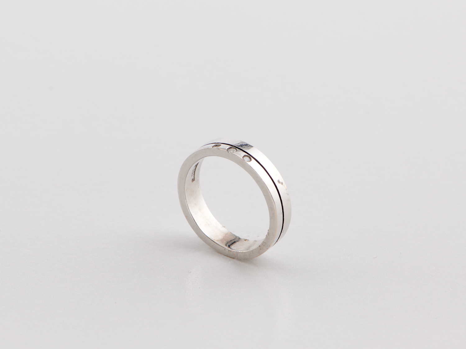 A THREE STONE DIAMOND SET RING IN 18CT WHITE GOLD, SIZE Q, 7.56GMS