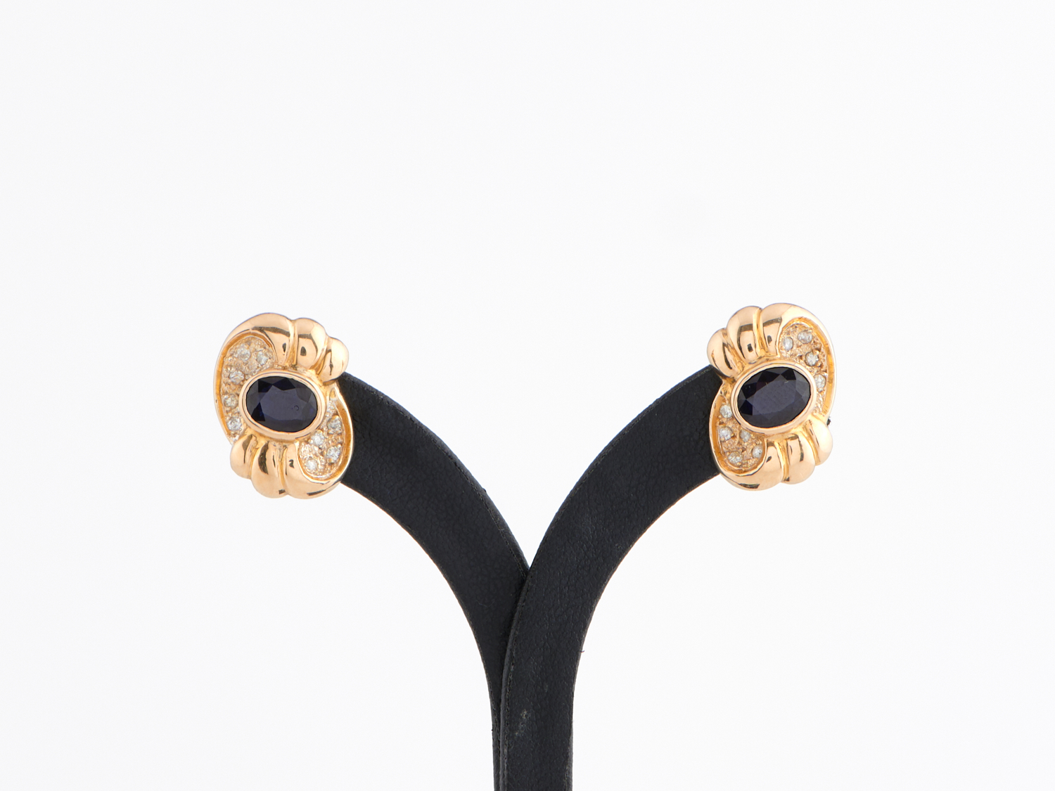 A PAIR OF SAPPHIRE AND DIAMOND EARRINGS IN TO POST AND BUTTERFLY FITTINGS IN 14CT GOLD, WEIGHT 9.42GMS