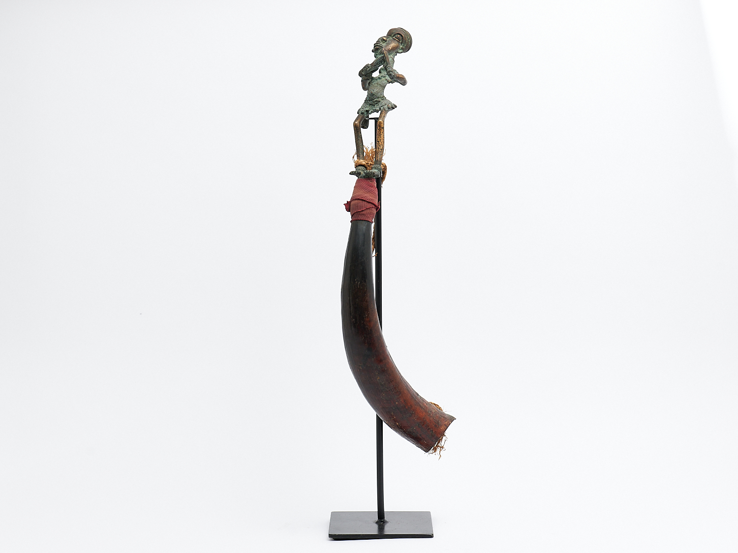 A BRONZE MOUNTED TRIBAL HORN ON STAND H.72.5CM, LEONARD JOEL LOCAL DELIVERY: MEDIUM
