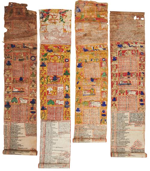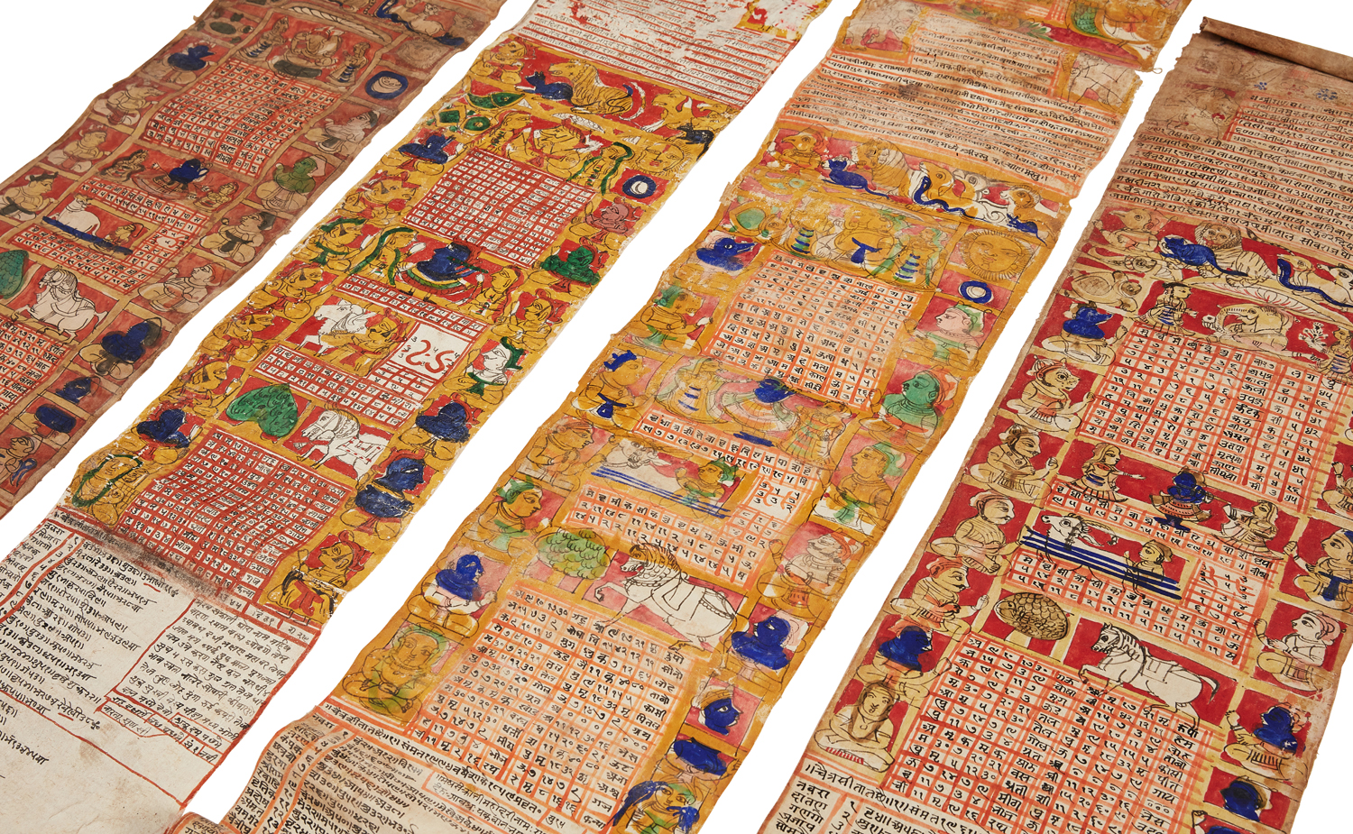 FOUR RARE NORTHWEST INDIAN 'JANAMPATRI' ASTROLOGICAL SCROLLS