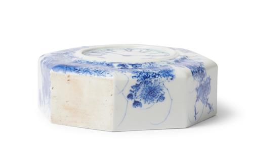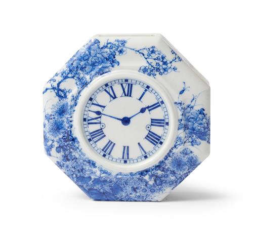 A RARE JAPANESE SETO BLUE AND WHITE CLOCK-FORM WALL VASE