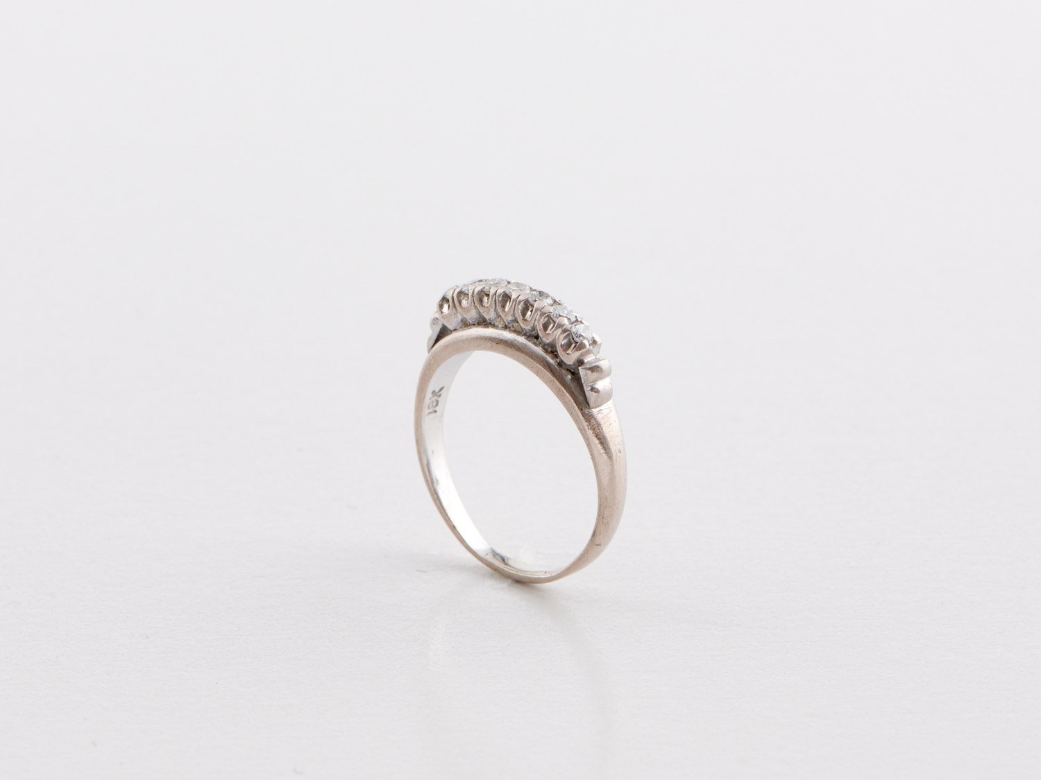 A DIAMOND SET HALF HOOP RING 18CT WHITE GOLD, THE SEVEN DIAMONDS TOTALLING 0.21CTS, G-H/SI, SIZE M, 3.0GMS