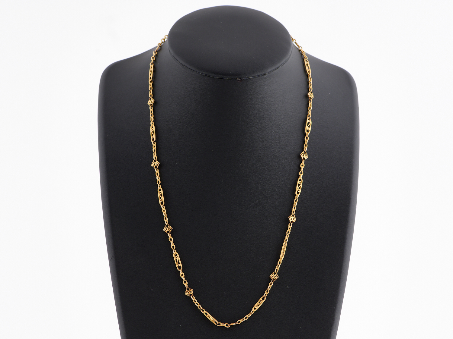A DIAMOND NECKLACE IN 18CT WHITE GOLD, OF RIVIERE STYLE, COMPRISING A LINE OF CLAW-SET OVAL, MARQUISE AND PEAR-CUT DIAMONDS TOGETHER...