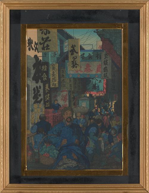 Entitled 'Street Scene, Soochow in Kiangsu', published by Watanabe Shozaburo.