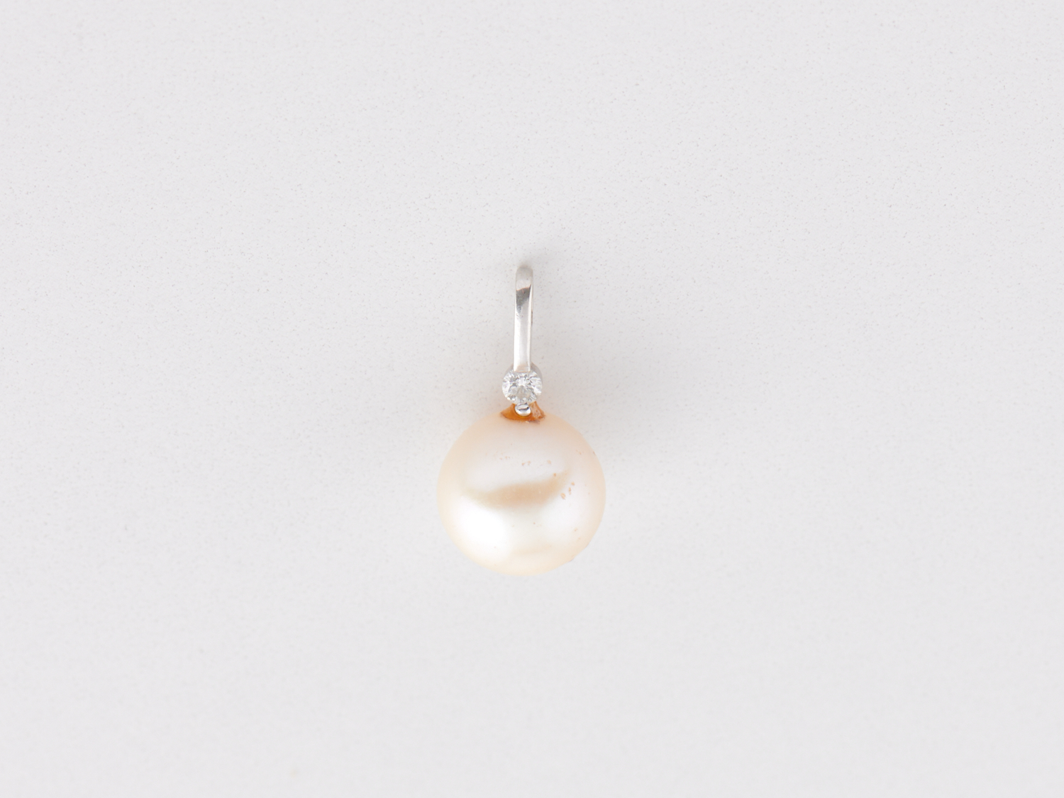 pitmarks and scratches to pearl surface. visible old glue to bail setting