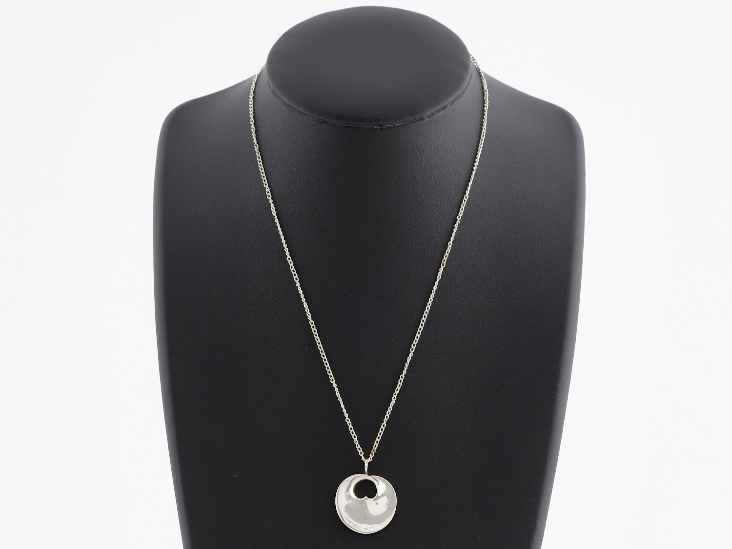 A HEART PENDANT IN STERLING SILVER BY VIVIANNA TORUN FOR GEORG JENSEN, TO A CHAIN IN SILVER PLATE